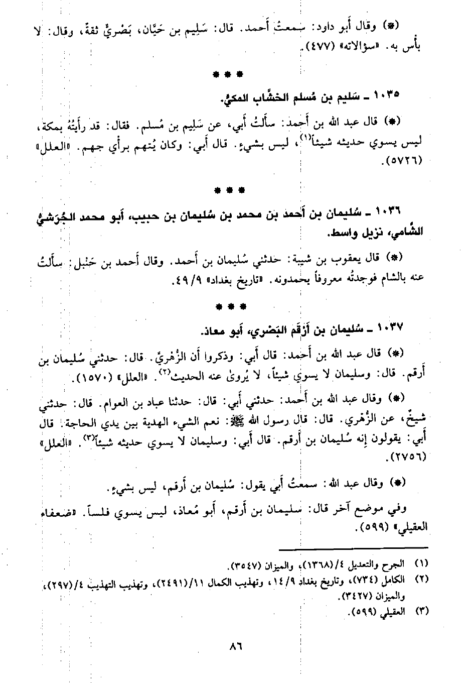 • وقال عبد الله: سمعتُ أَبي يقول: سليمان بن أرقم، ليس بشيء.