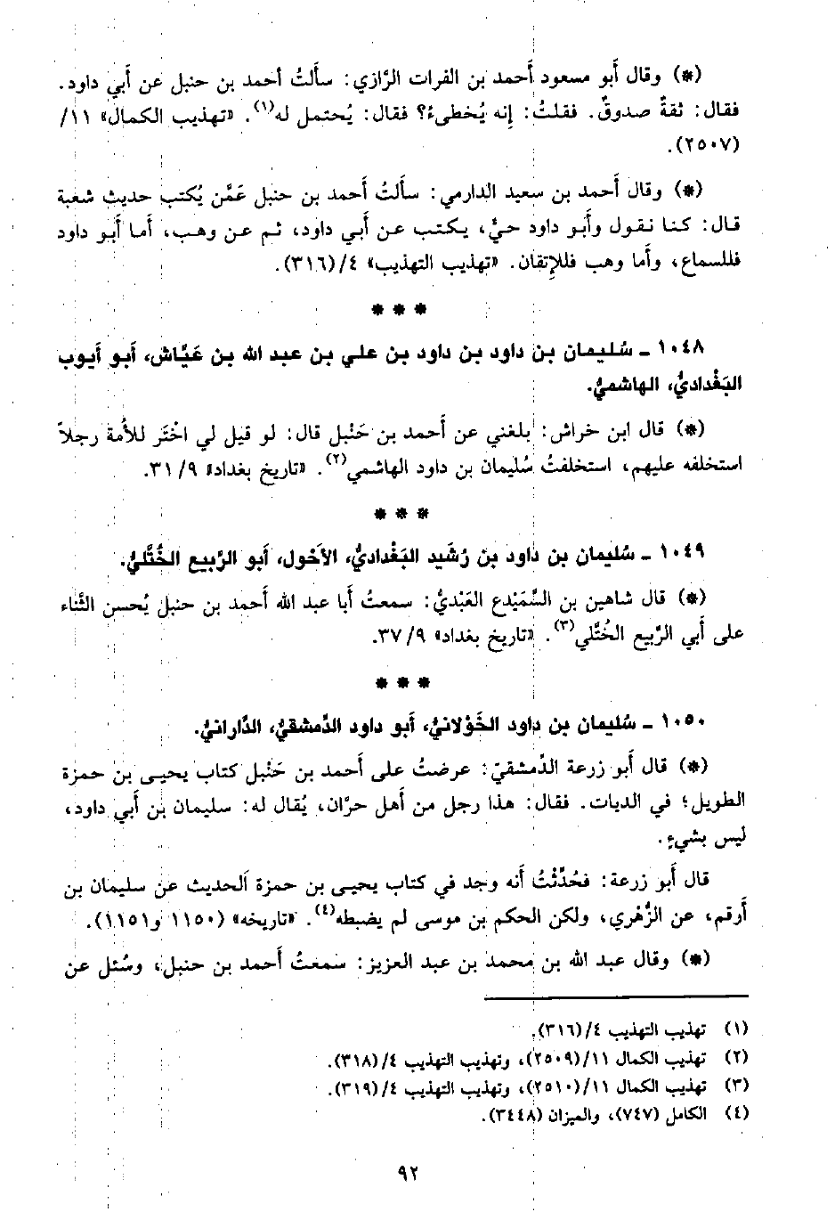 • قال ابن خراش: بلغني عن أحمد بن حنبل قال: لو قيل لي اختر للأمة رجلاً استخلفه عليهم، استخلفت سليمان بن داود الهاشمي. «تاريخ بغداد» 9/31.