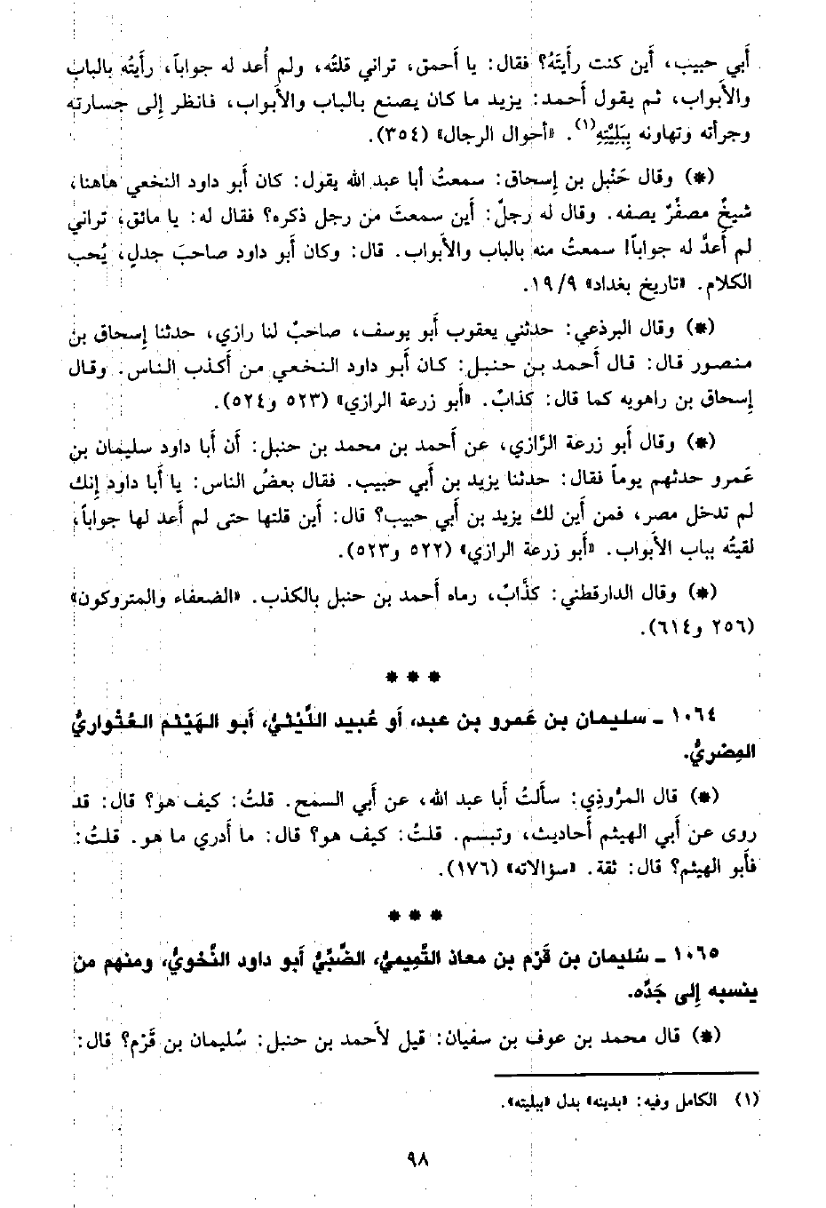 • قال محمد بن عوف بن سفيان: قيل لأحمد بن حنبل: سليمان بن قرم؟ قال: