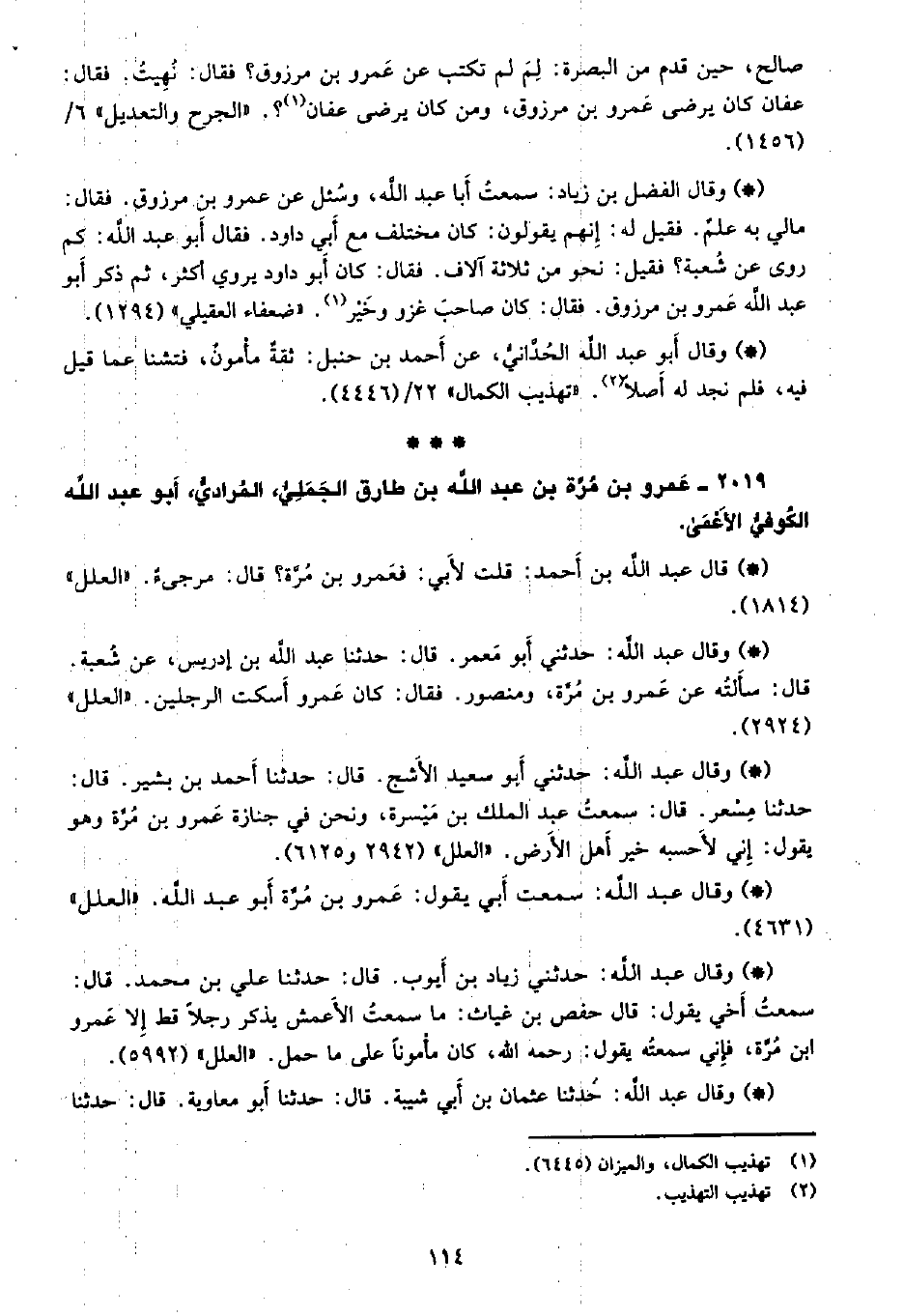 2019 - عمرو بن مرة بن عبد الله بن طارق الجملي، المرادي، أبو عبد الله الكوفي الأعمى.