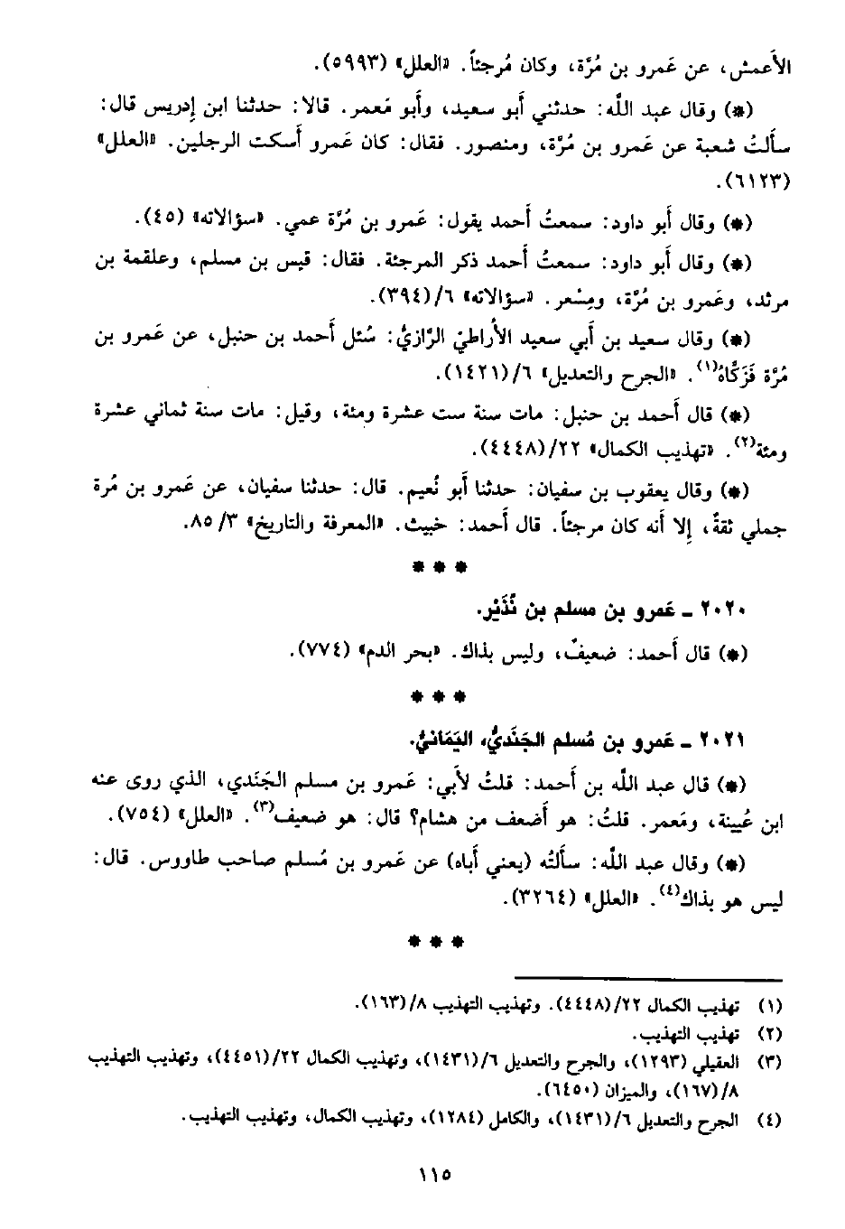 • وقال سعيد بن أبي سعيد الأراطي الرازي: سئل أحمد بن حنبل، عن عمرو بن مرة فزكاه. «الجرح والتعديل» 6/ (1421) .
