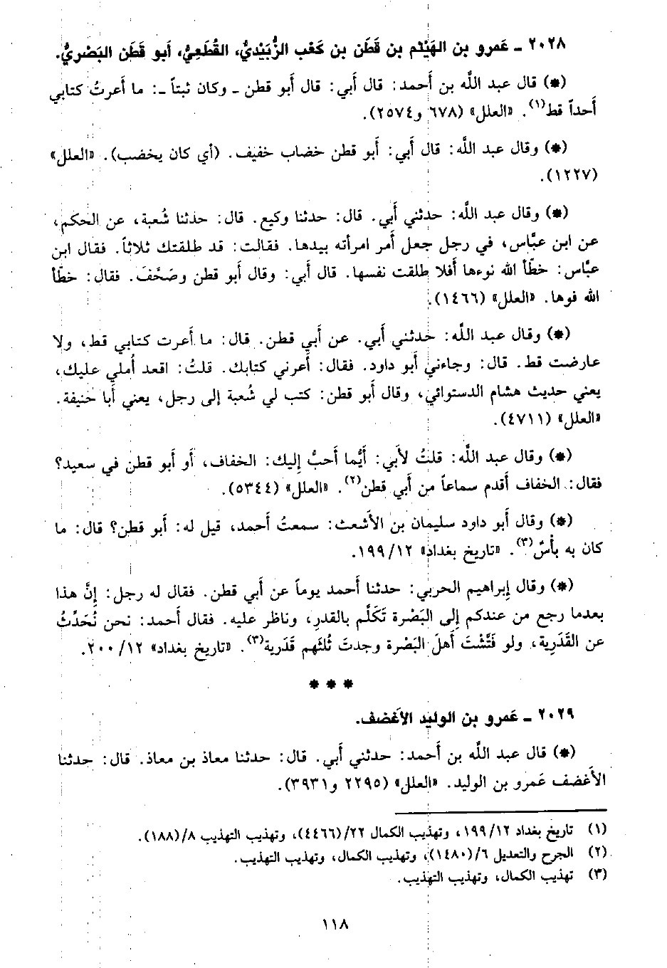 • قال عبد الله بن أحمد: حدثني أبي. قال: حدثنا معاذ بن معاذ، قال: حدثنا الأغضف عمرو بن الوليد. «العلل» (2295 و3931) .