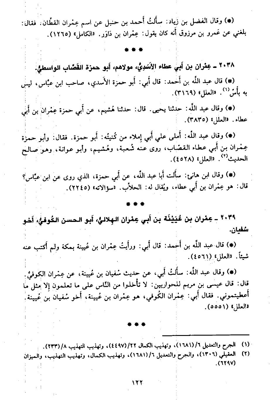• وقال عبد الله: سألت أبي، عن حديث سفيان بن عيينة، عن عمران الكوفيُّ، قال: قال عيسى بن مريم للحوارين: لا تتأخذوا من الناس على ما تعلمون إلا مثل ما أعطيتموني، فقال أبي: عمران الكوفيُّ، هو عمران بن عيينة، أخو سفيان بن عيينة. «االعلل» (5551) .
