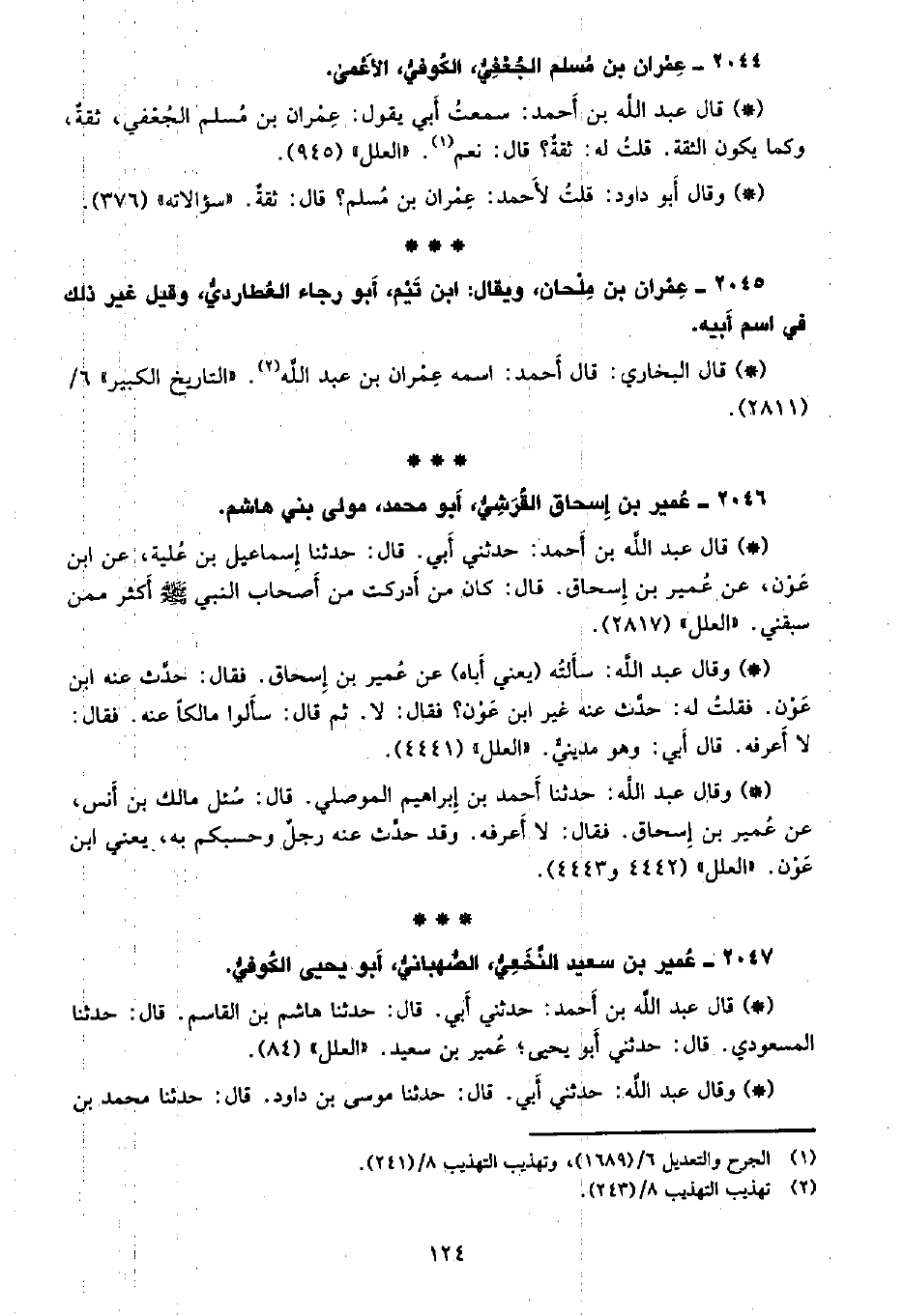 • قال عبد الله بن أحمد: سمعتُ أَبي يقول: عمران بن مسلم الجعفي، ثقة، وكما يكون الثقة، قلت له: ثقة؟ قال: نعم. «العلل» (945) .