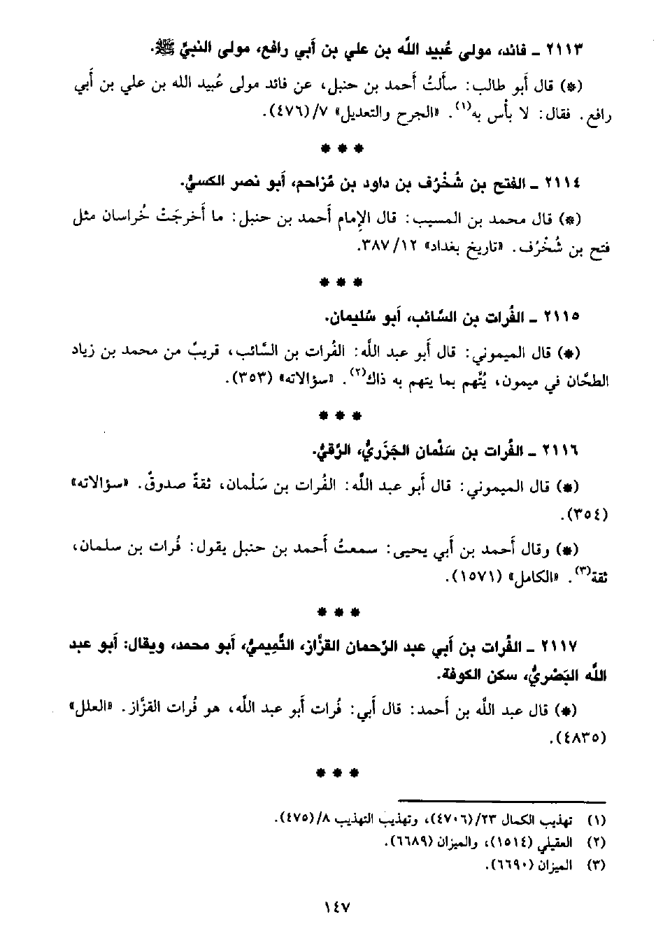 2117 - الفرات بن أبى عبد الرحمن القزاز، التميمي، أبو محمد، ويقال: أبو عبد الله البصري، سكن الكوفة.