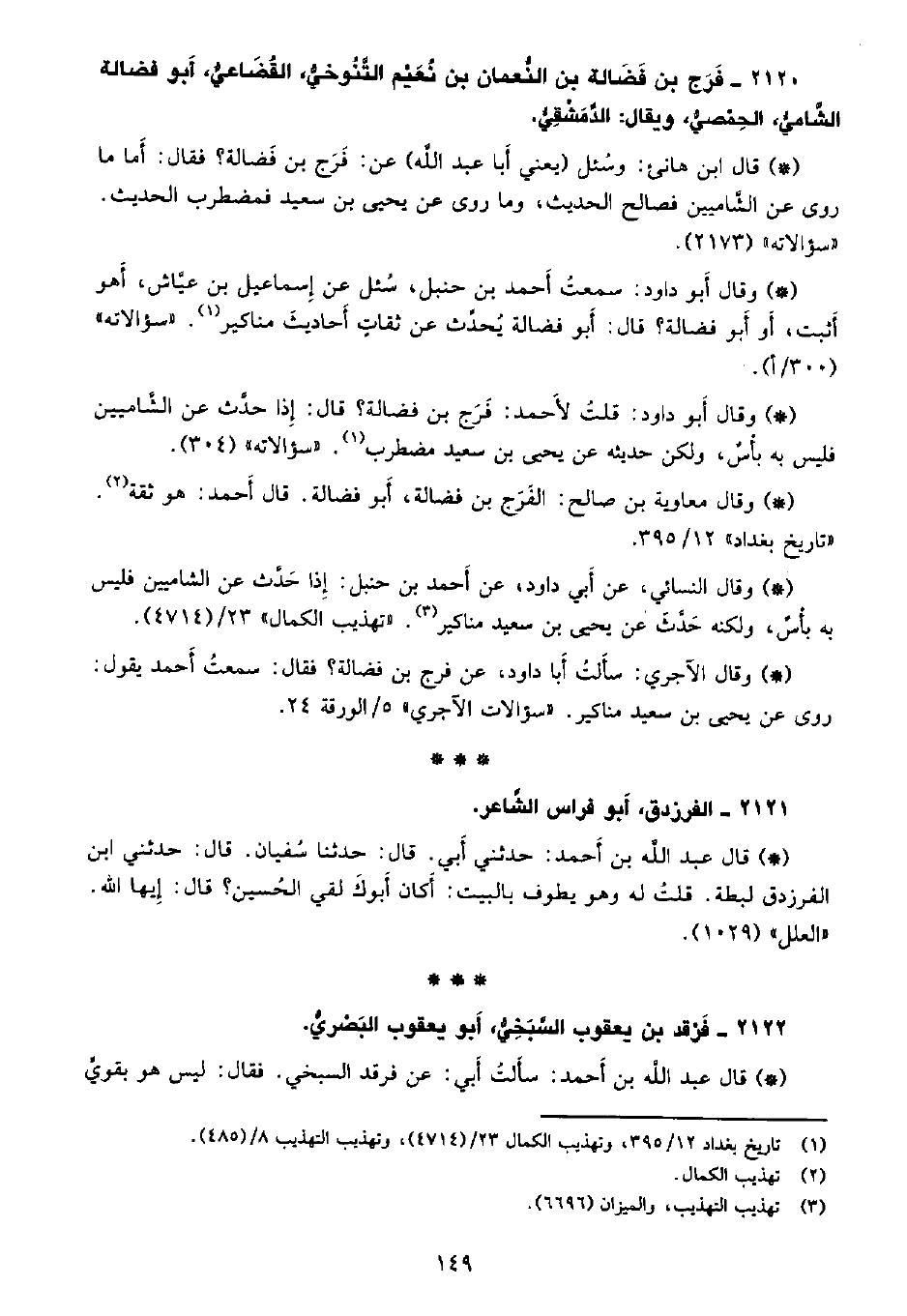 • وقال معاوية بن صالح: فرج بن فضالة، أبو فضالة، قال أحمد: هو ثقة. «تاريخ بغداد» 12/395.