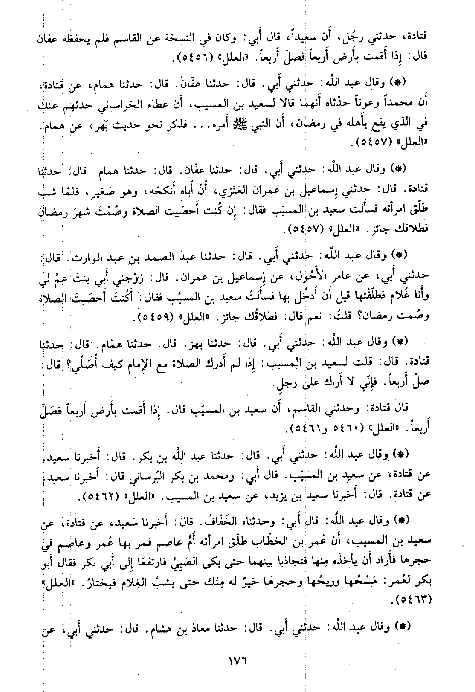 • وقال عبد الله: حدثني أبي. قال: حدثنا عبد الله بن بكر، قال: أخبرنا سعيد، عن قتادة، عن سعيد بن المسيب، قال أبي: ومحمد بن بكر البرساني قال: أخبرنا سعيد، عن قتادة، قال: أخبرنا سعيد بن يزيد، عن سعيد بن المسيب. «العلل» (5462) .