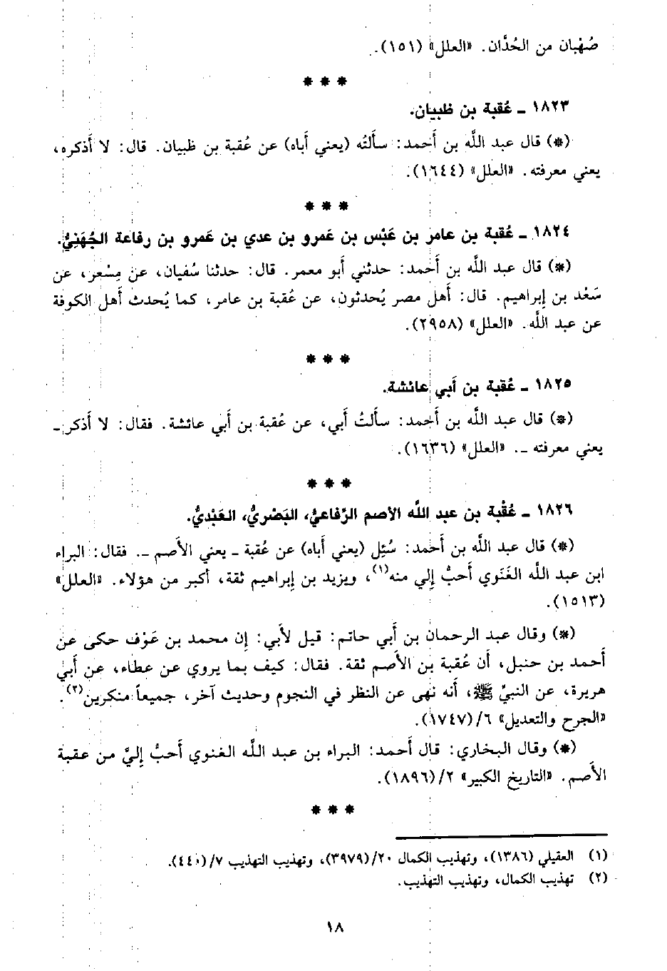 • وقال البخارى: قال أحمد: البراء بن عبد الله الغنوي أحب إلى من عقبه الأصم. «التاريخ الكبير» 2/ (1896) .
