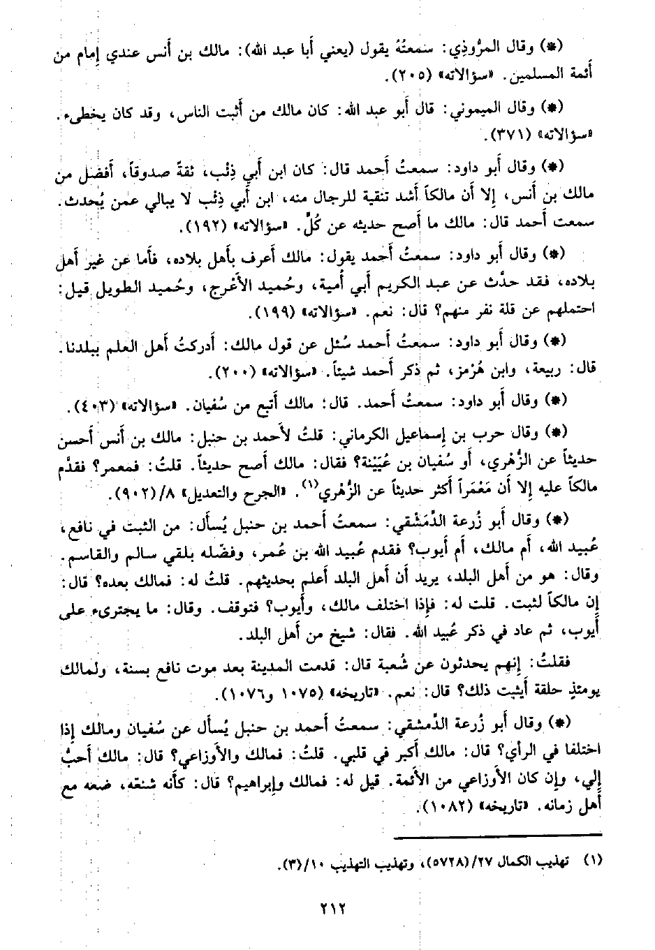 • وقال أبو داود: سمعت أحمد، قال: مالك أتبع من سفيان. «سؤالاته» (403) .