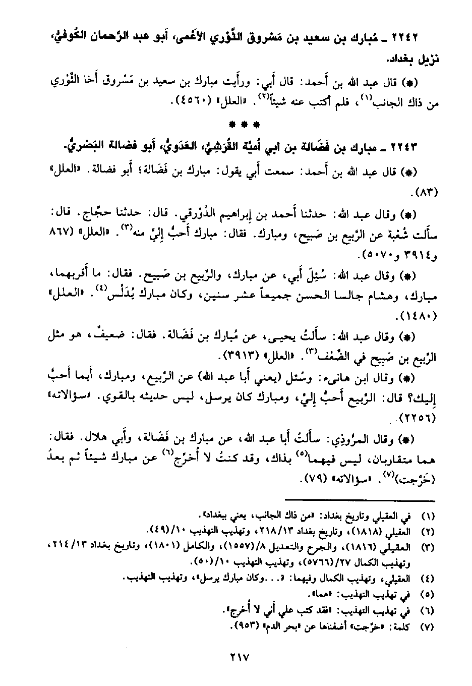 • وقال عبد الله: حدثنا أحمد بن إبراهيم الدورقي، قال: حدثنا حجاج، قال: سألت شعبة عن الربيع بن صبيح، ومبارك، فقال: مبارك أحب إلي منه. «العلل» (867 و3914 و5070) .