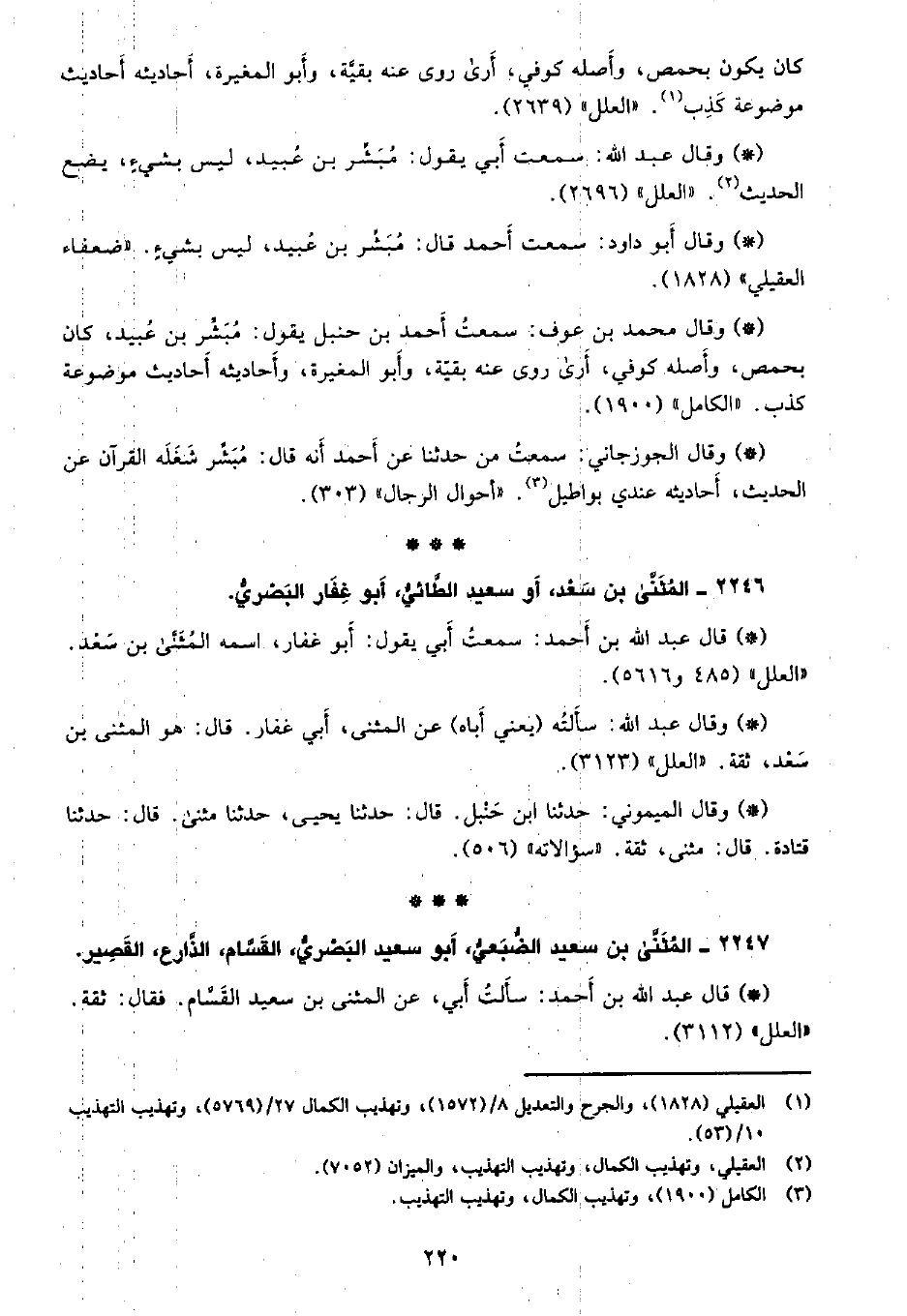 • وقال عبد الله: سألته (يعني أَباه) عن المثنى، أبي غفار، قال: هو المثنى بن سعد، ثقة. «العلل» (3121) .