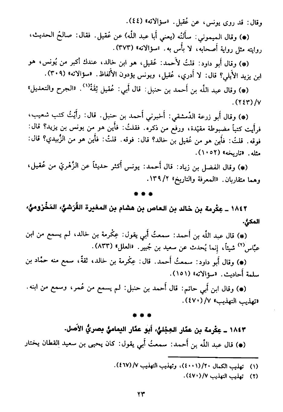 • وقال الفضل بن زياد: قال أحمد: يونس أكثر حديث عن الزهري من عقيل، وهما متقاربان. «المعرفة والتاريخ» 2/139.