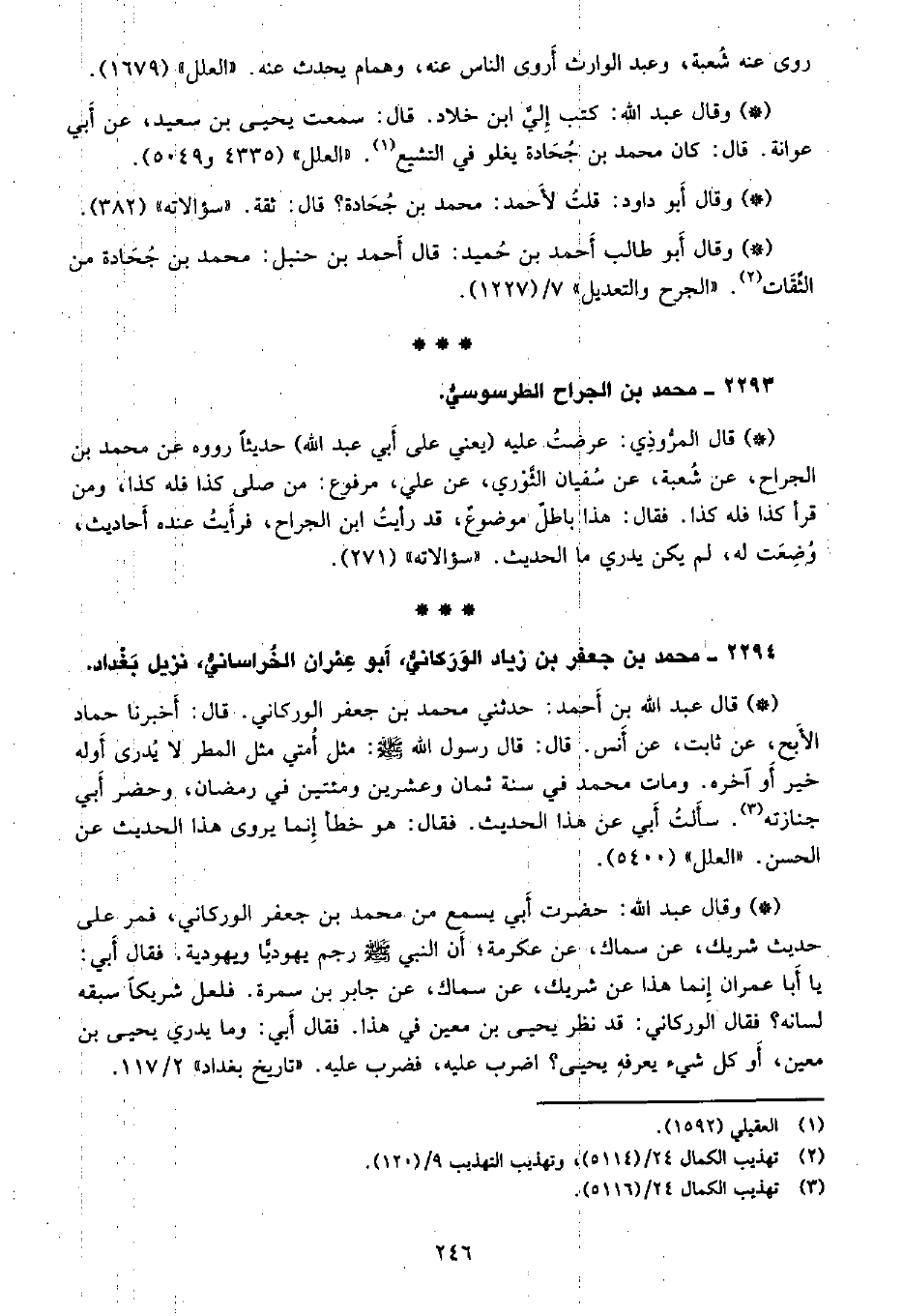 • وقال عبد الله: كتب إلي ابن خلاد، قال: سمعت يحيى بن سعيد، عن أبي عوانة، قال: كان محمد بن جحادة يغلو في التشيع. «العلل» (4335 و5049) .