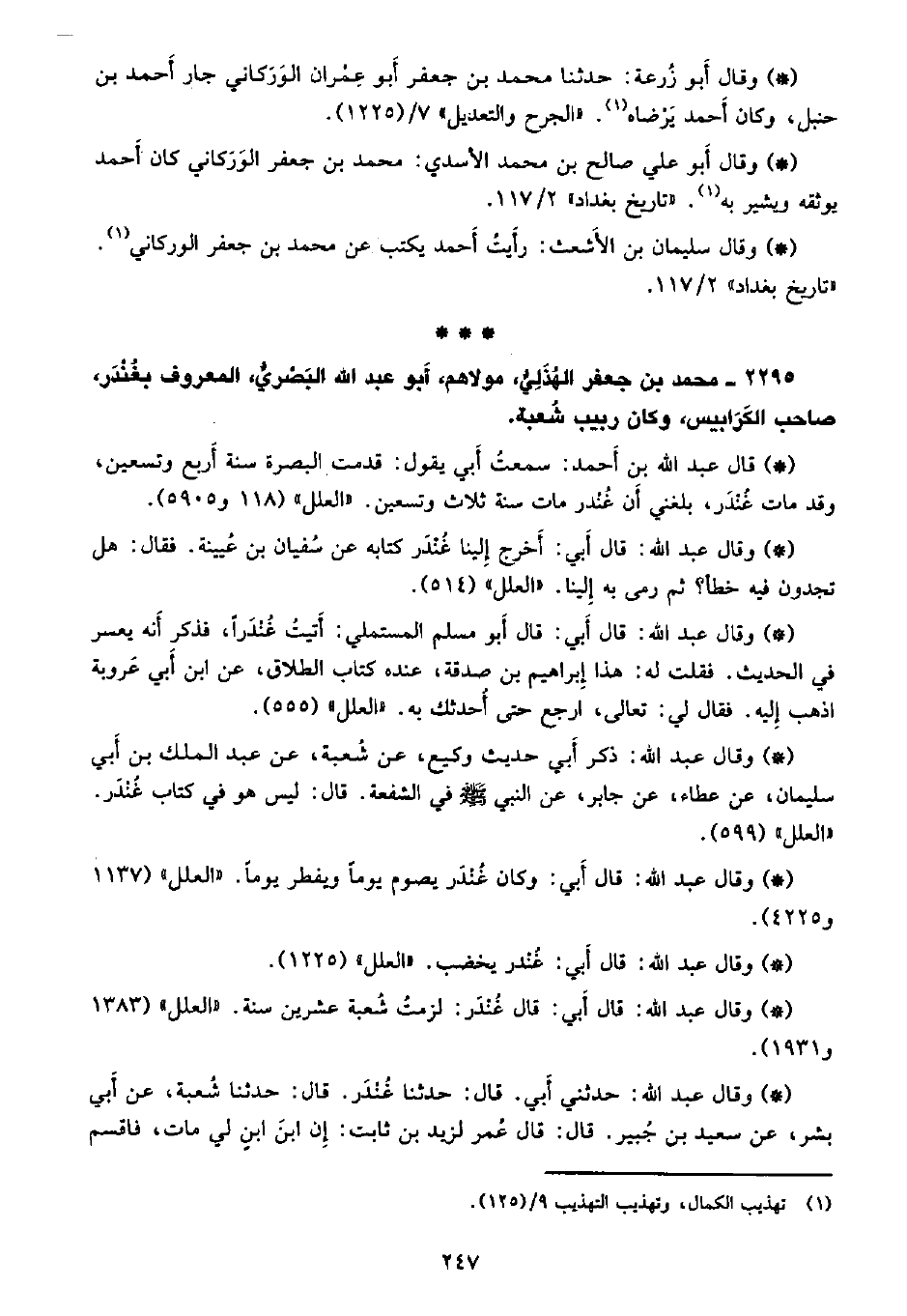 2295 - محمد بن جعفر الهذلي، مولاهم، أبو عبد الله البصري، المعروف بغندر، صاحب الكرابيس، وكان ربيب شعبة.