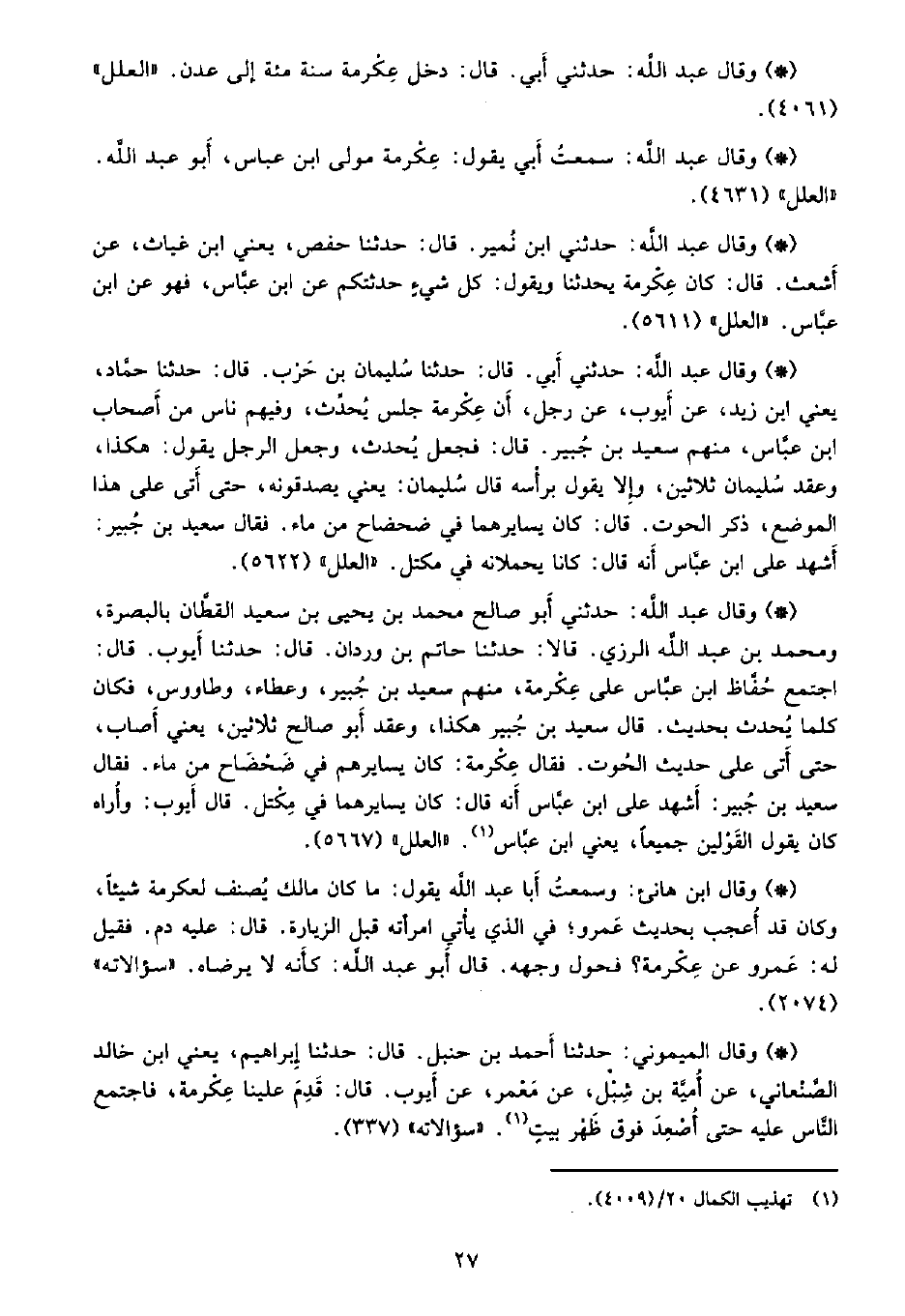 • وقال عبد الله: سمعتُ أَبي يقول: عكرمة مولى ابن عباس، أبو عبد الله. «العلل» (4631) .