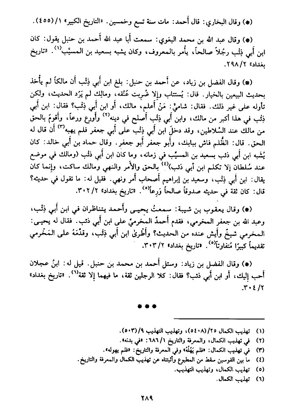 • وقال الفضل بن زياد: وسئل أحمد بن محمد بن حنبل، قيل له: ابن عجلان أحب إليك، أو ابن أبي ذئب؟ فقال: كلا الرجلين ثقة، ما فيهما إلا ثقة. «تاريخ بغداد» 2/304.