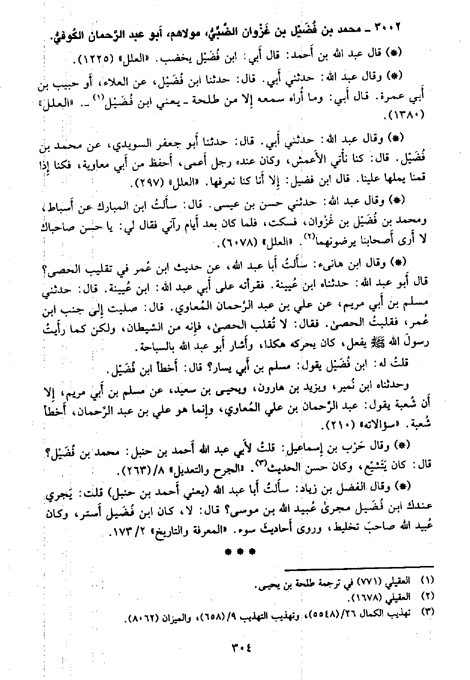 3002 - محمد بن فضيل بن غزوان الضبي، مولاهم، أبو عبد الرحمن الكوفيُّ.