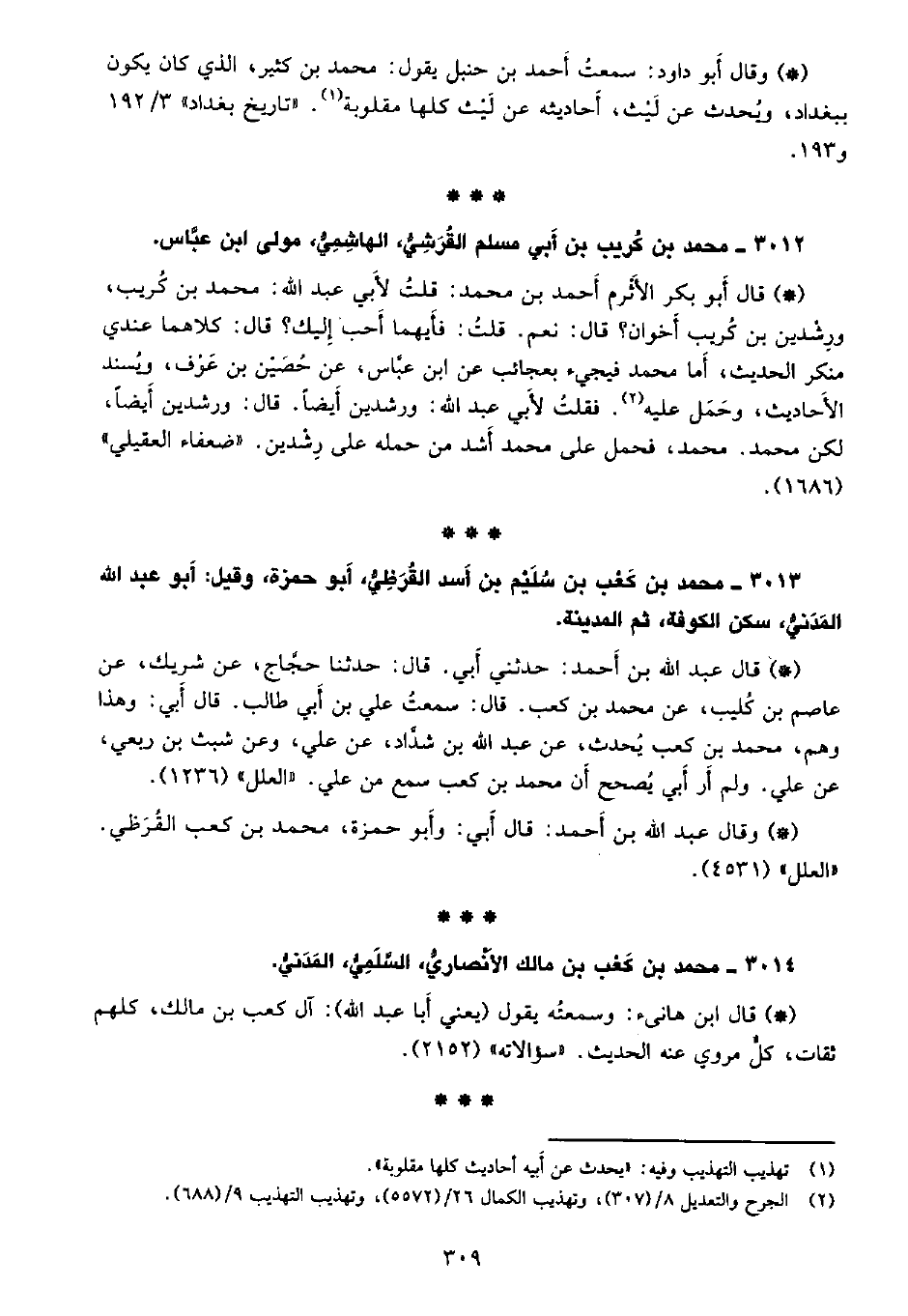 3012 - محمد بن كريب بن أبي مسلم القرشي، الهاشمي، مولى ابن عباس.