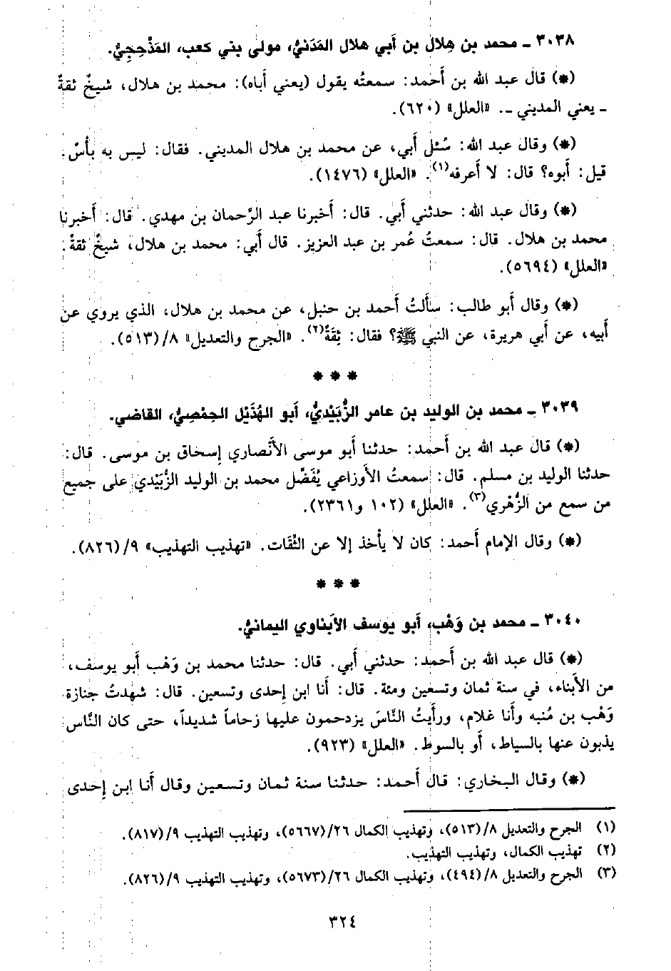 • وقال عبد الله: حدثني أبي. قال: أخبرنا عبد الرحمن بن مهدي، قال: أخبرنا محمد بن هلال، قال: سمعت عمر بن عبد العزيز، قال أبي: محمد بن هلال، شيخ ثقة. «العلل» (5694) .