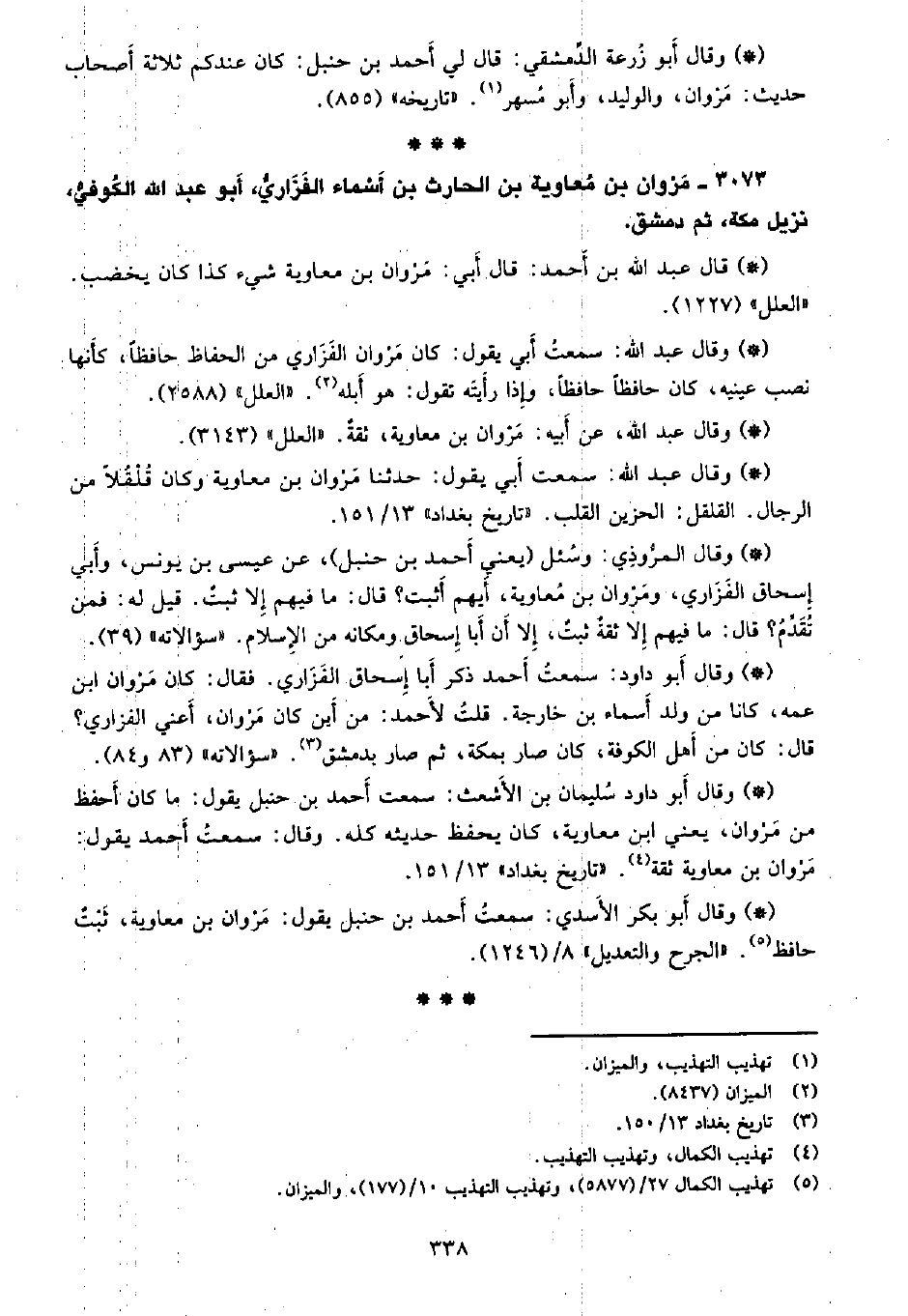 3073 - مروان بن معاوية بن الحارث بن أسماء الفزاري، أبو عبد الله الكوفيُّ، نزيل مكة، ثم دمشق.