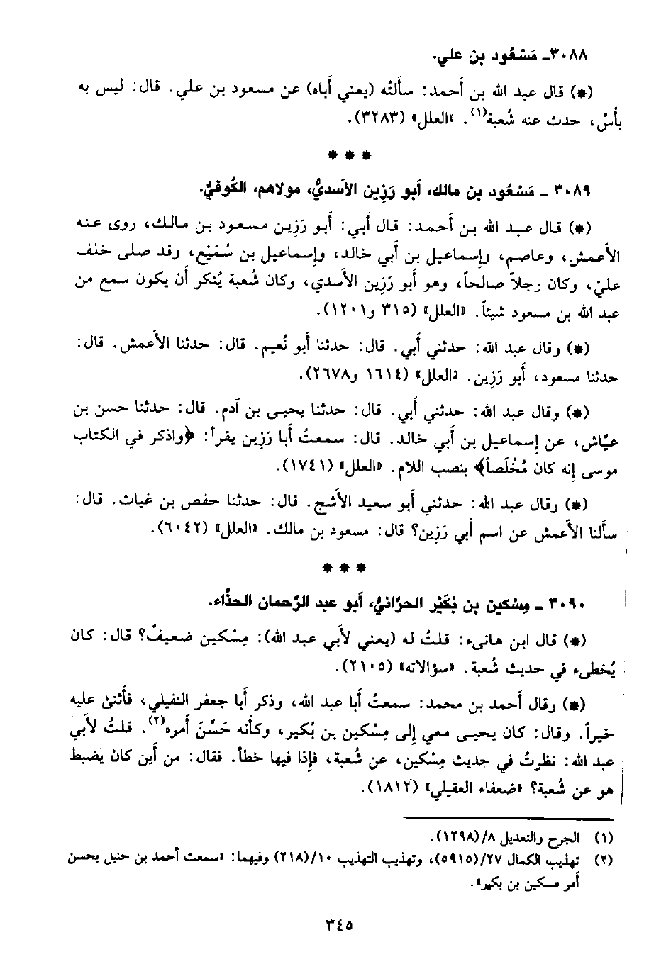 • وقال عبد الله: حدثني أبي. قال: حدثنا أبو نعيم، قال: حدثنا الأعمش، قال: حدثنا مسعود، أبو رزين. «العلل» (1614 و2678) .