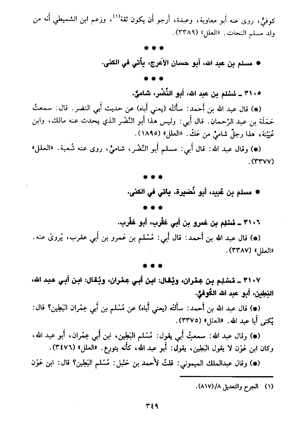 • وقال عبد الله: قال أبي: مسلم أبو النضر، شامي، روى عنه شعبة. «العلل» (3377) .