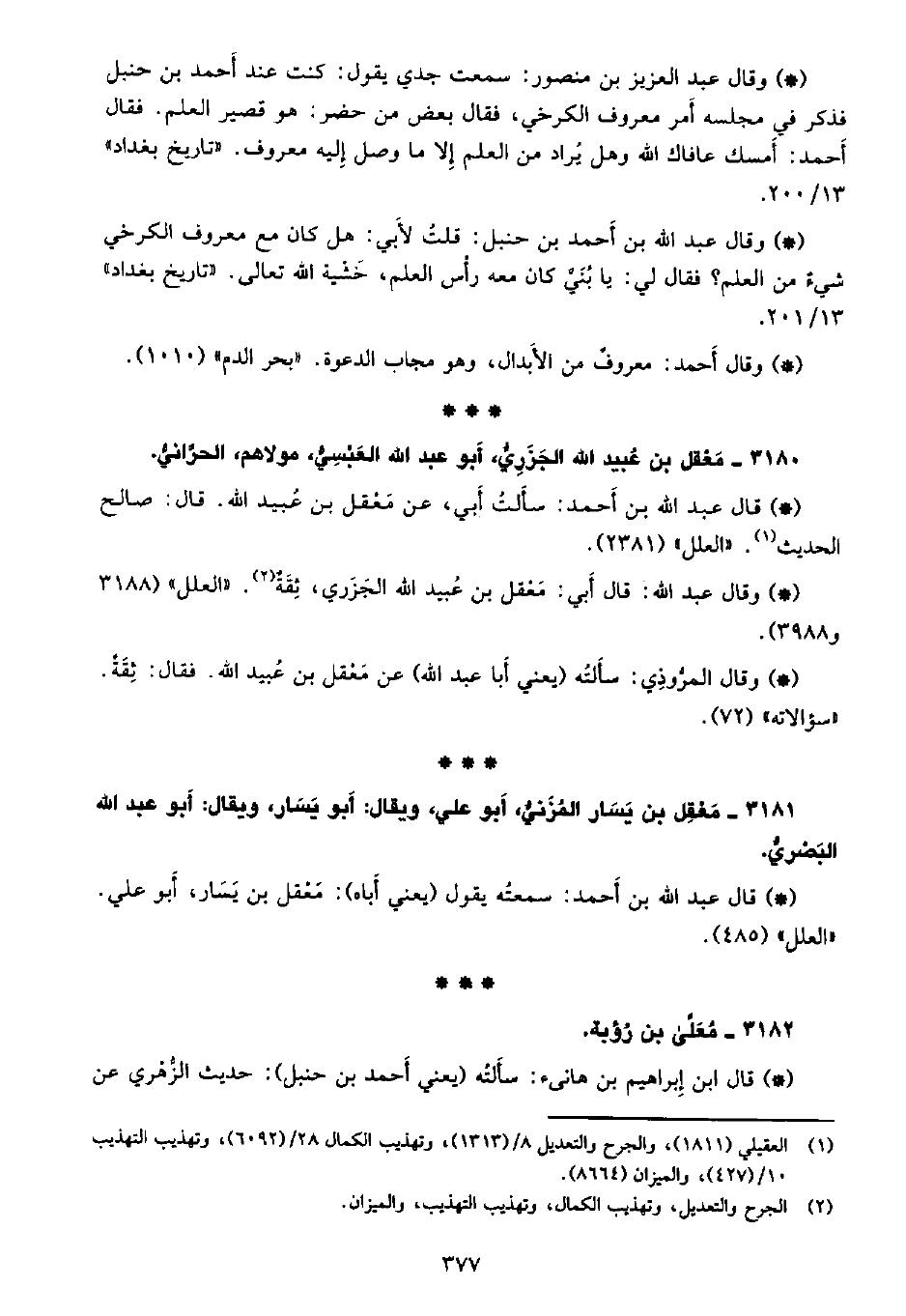 • وقال عبد الله: قال أبي: معقل بن عُبيد الله الجزري، ثقة. «العلل» (3188 و3988) .