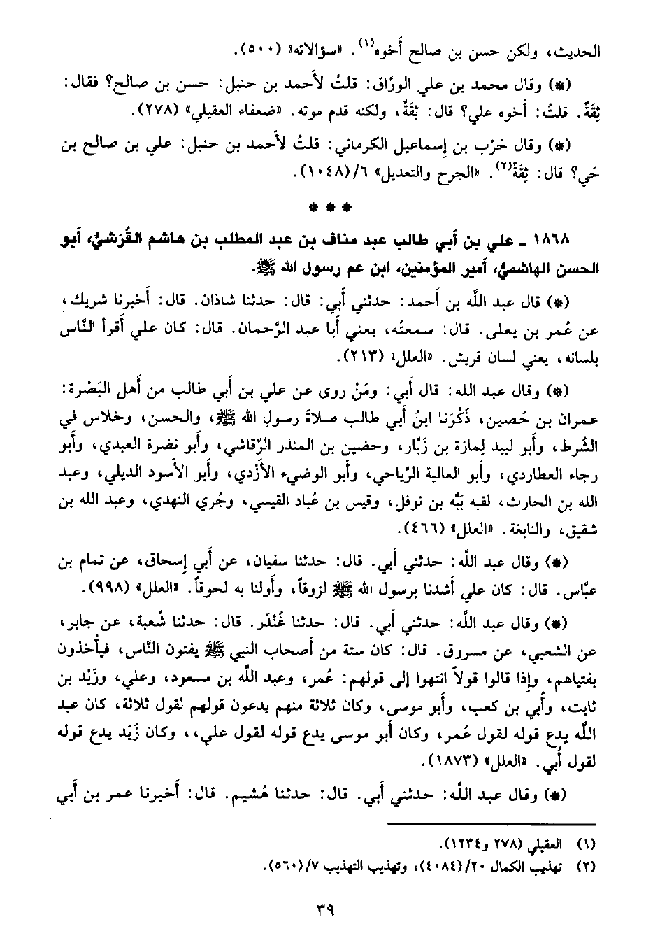 1868 - علي بن أبي طالب عبد مناف بن عبد الله بن هاشم القرشي، أبو الحسن الهاشمي، أميو المؤمنين، ابن عم رسول الله - صلى الله عليه وسلم -.