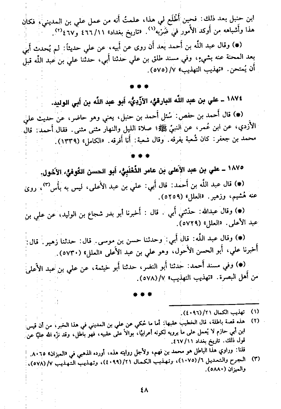 ابن حنبل بعد ذلك: فحين أطلع لي هذا، علمت أنه من عمل علي بن المديني، فكان هذا وأشباهه من أوكد الأمور في ضربه. «تاريخ بغداد» 11/466 و467.