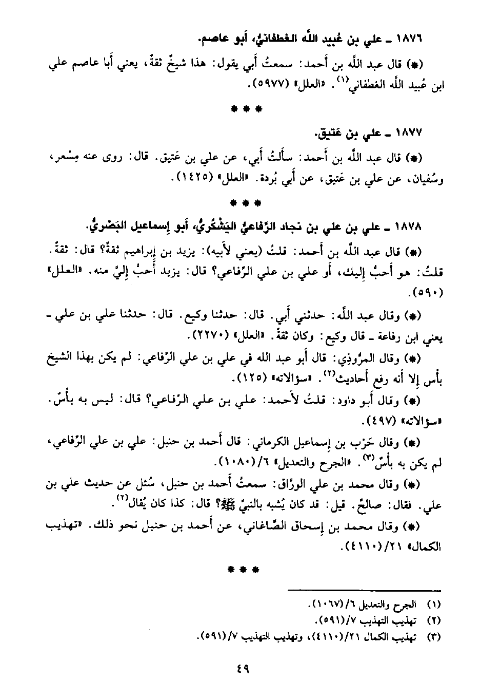 • وقال محمد بن إسحاق الصاغاني، عن أحمد بن حنبل نحو ذلك. «تهذيب الكمال» 21/ (4110) .