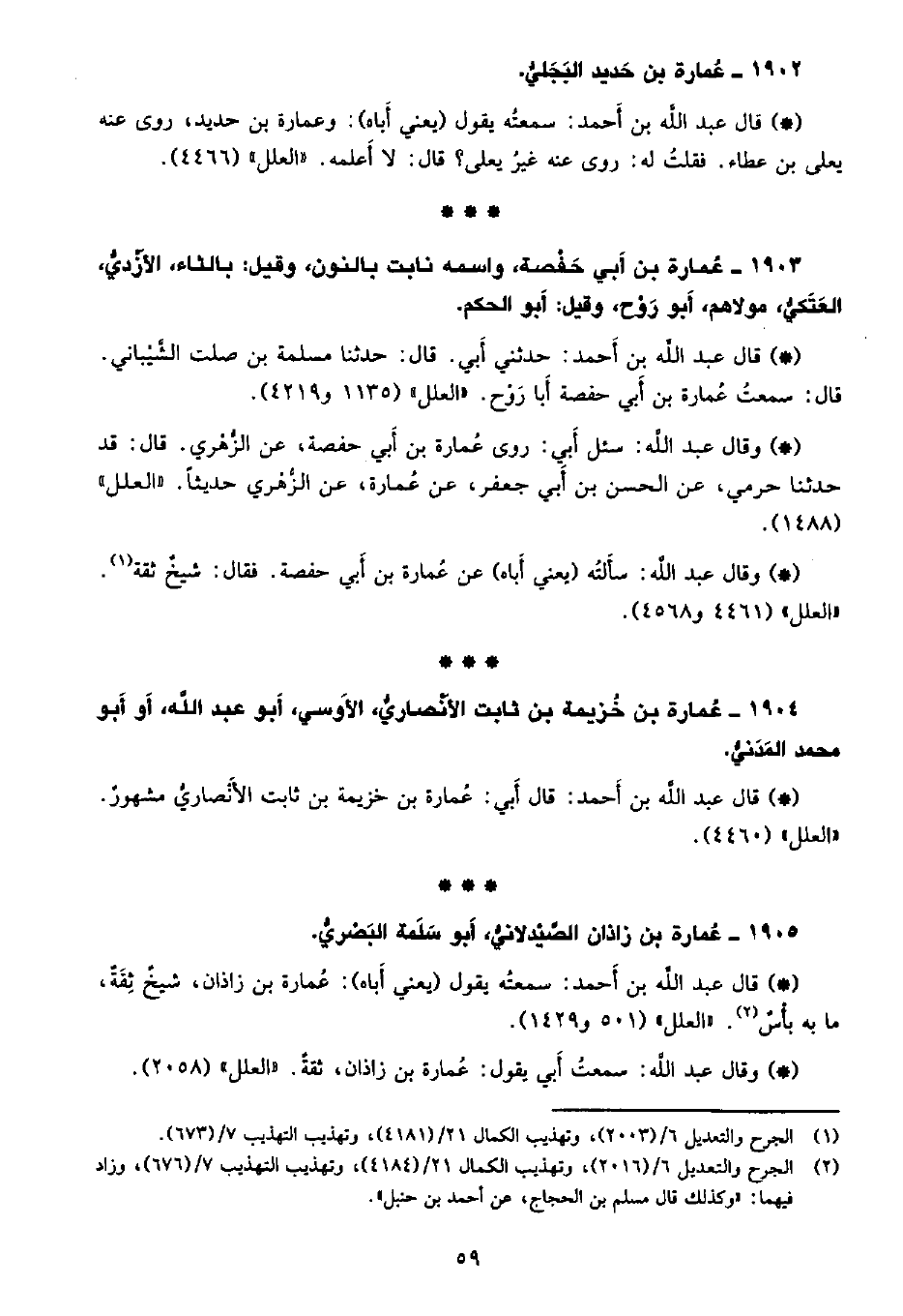 • وقال عبد الله: سألته (يعني أباه) عن عمارة بن أبي حفصة، فقال: شيخ ثقة. «العلل» (4461 و4568) .