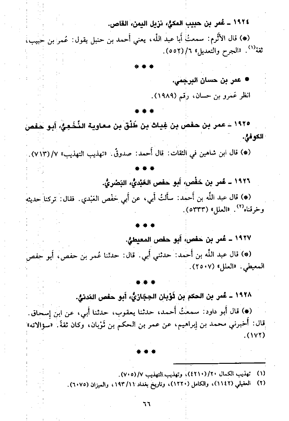 • قال عبد الله بن أحمد: حدثني أبي. قال: حدثنا عمر بن حفص، أبو حفص المعيطي. «العلل» (2507) .