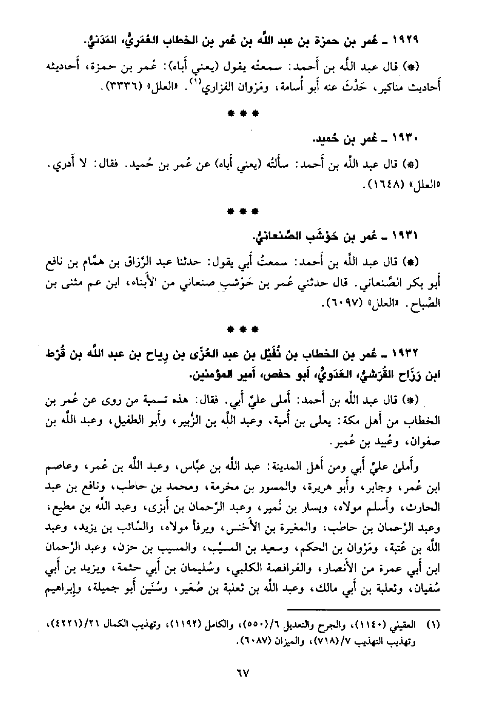 • قال عبد الله بن أحمد: أملى علي أبي، فقال: هذه تسمية من روى عن عمر بن الخطاب من أهل مكة: يعلى بن أمية، وعبد الله بن الزبير، وأبو الطفيل، وعبد الله بن صفوان، وعُبيد بن عمير.