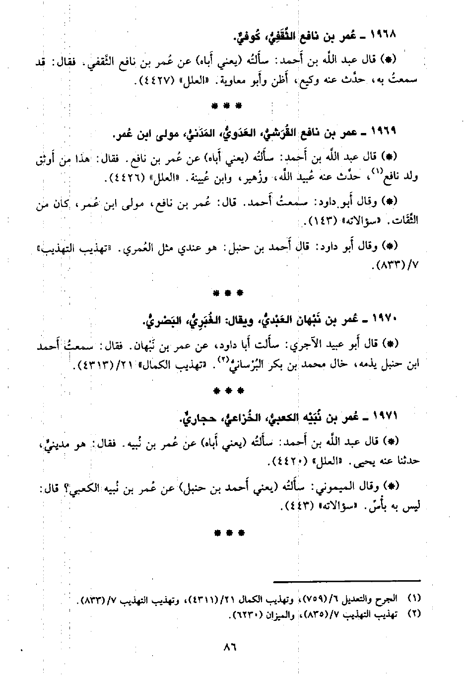 • وقال أبو داود: قال أحمد بن حنبل: هو عندي مثل العمري. «تهذيب التهذيب» 7/ (833) .