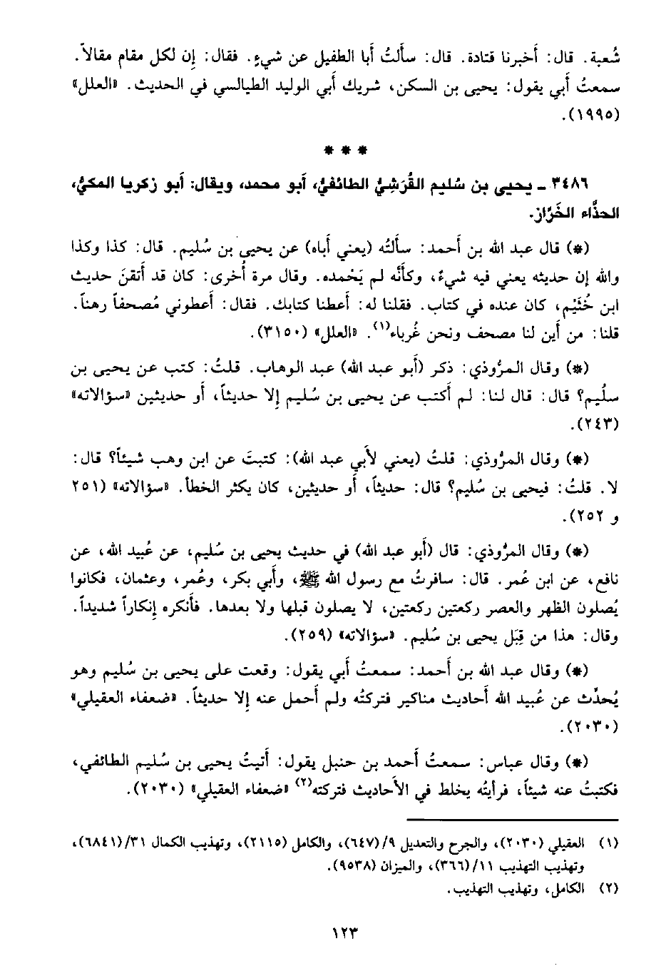 3486 - يحيى بن سليم القرشي الطائفي، أبو محمد، ويقال: أبو زكريا المكي، الحذاء الخراز.