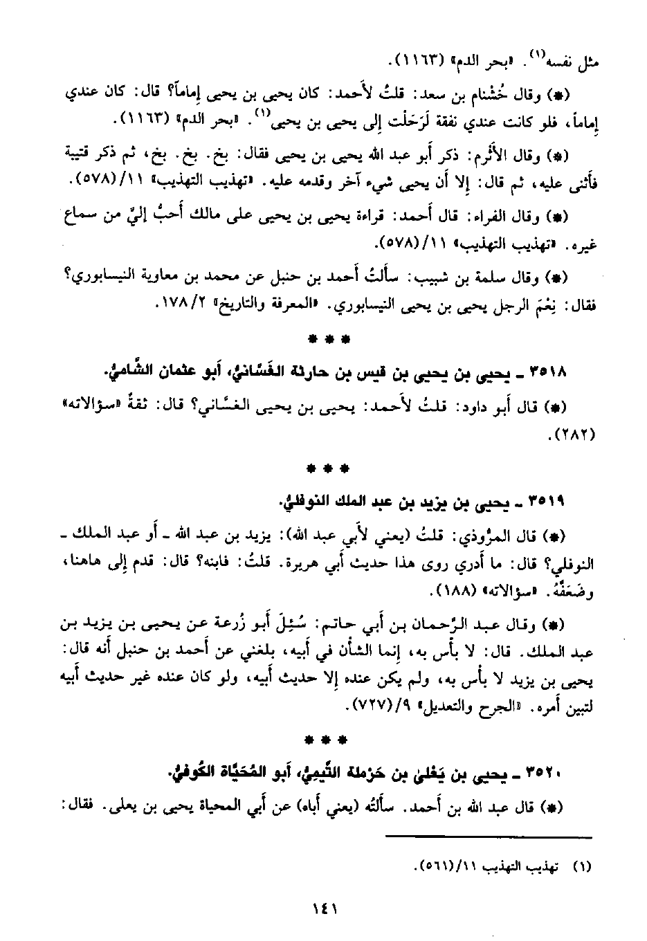 • وقال الفراء: قال أحمد: قراءة يحيى بن يحيى على مالك أحب إلي من سماع غيره. «تهذيب التهذيب» 11/ (578) .