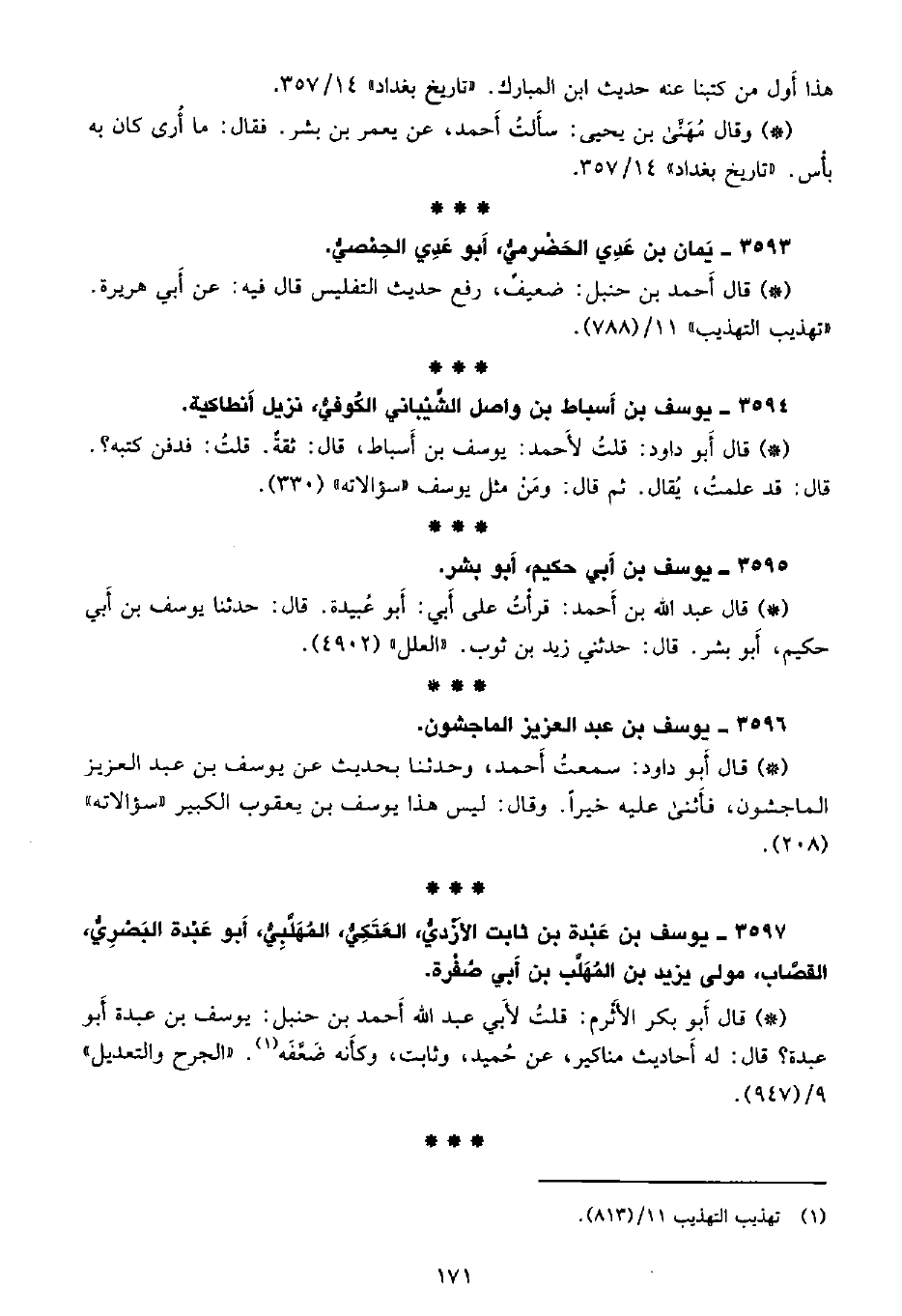 3597 - يوسف بن عبده بن ثابت الأزدي، العتكي، المهلبي، أبو عبدة البصري، القصاب، مولى يزيد بن المهلببن أبي صفرة.