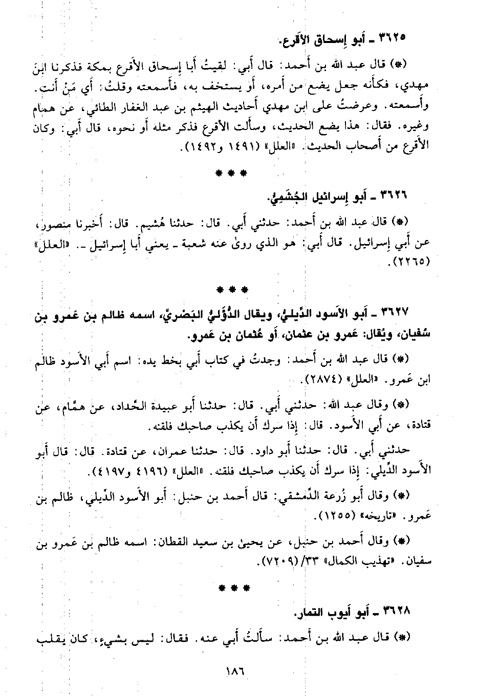 • وقال ابو زرعة الدمشقي: قال أحمد بن حنبل: أبو الأسود الديلي، ظالم بن عمرو. «تاريخه» (1255) .