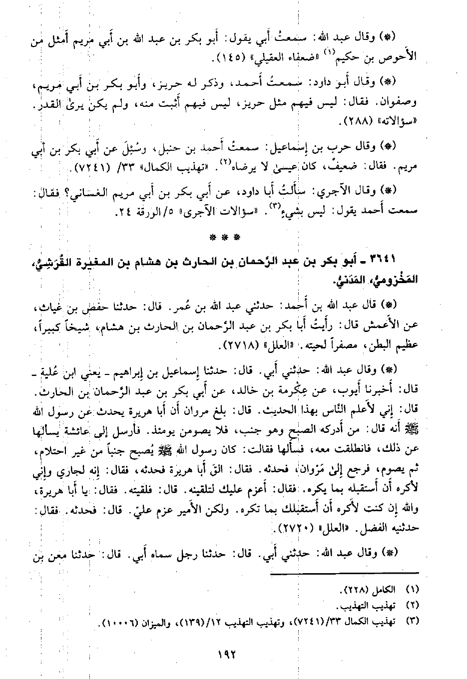 • وقال عبد الله: سمعتُ أَبي يقول: أبو بكر بن عبد الله بن أبي مريم أمثل من الأحوص بن حكيم. «ضعفاء العقيلي» (145) .