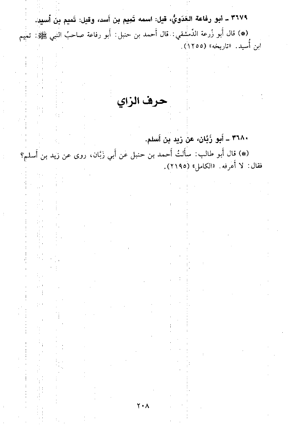 3679 - أبو رفاعة العدوي، قيل: اسمه تميم بن أسد، وقيل: تميم بن أسيد.