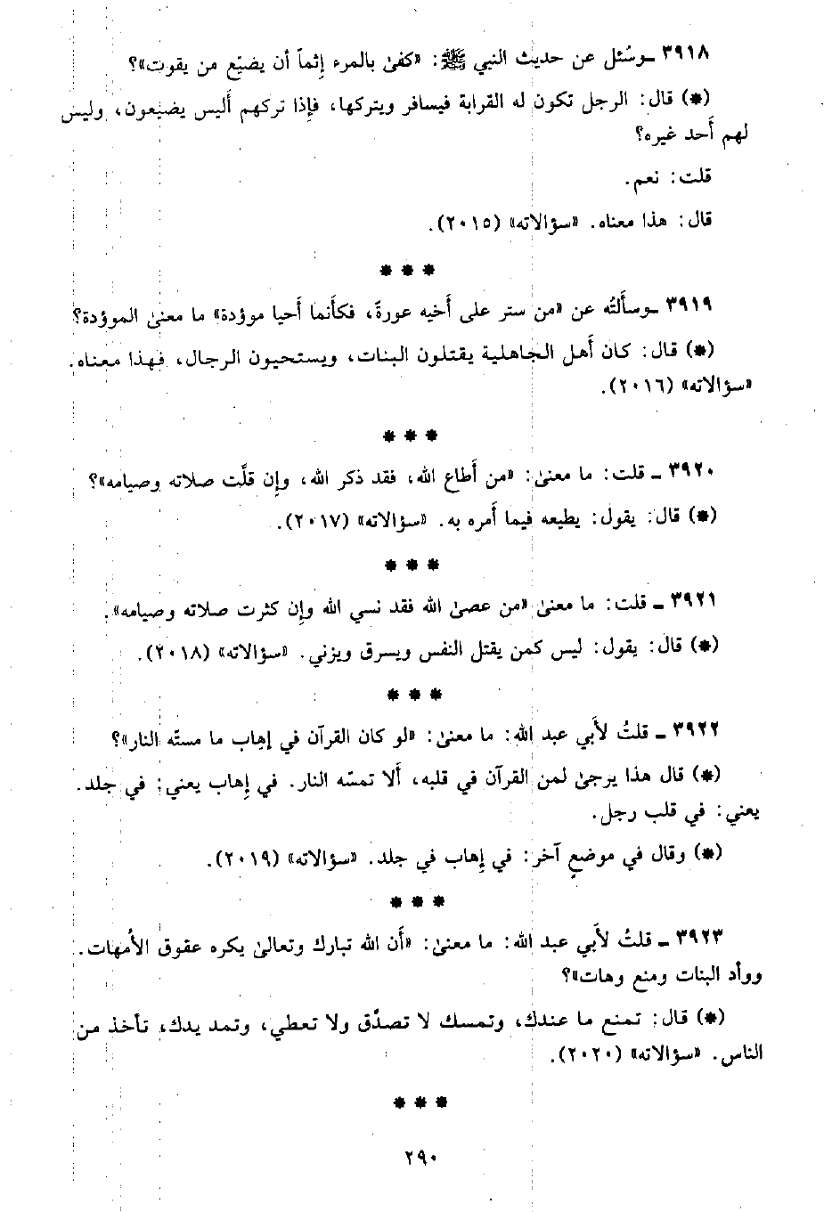 • قال: يقول: ليس كمن يقتل النفس ويسرق ويزني. «سؤالاته» (2018) .