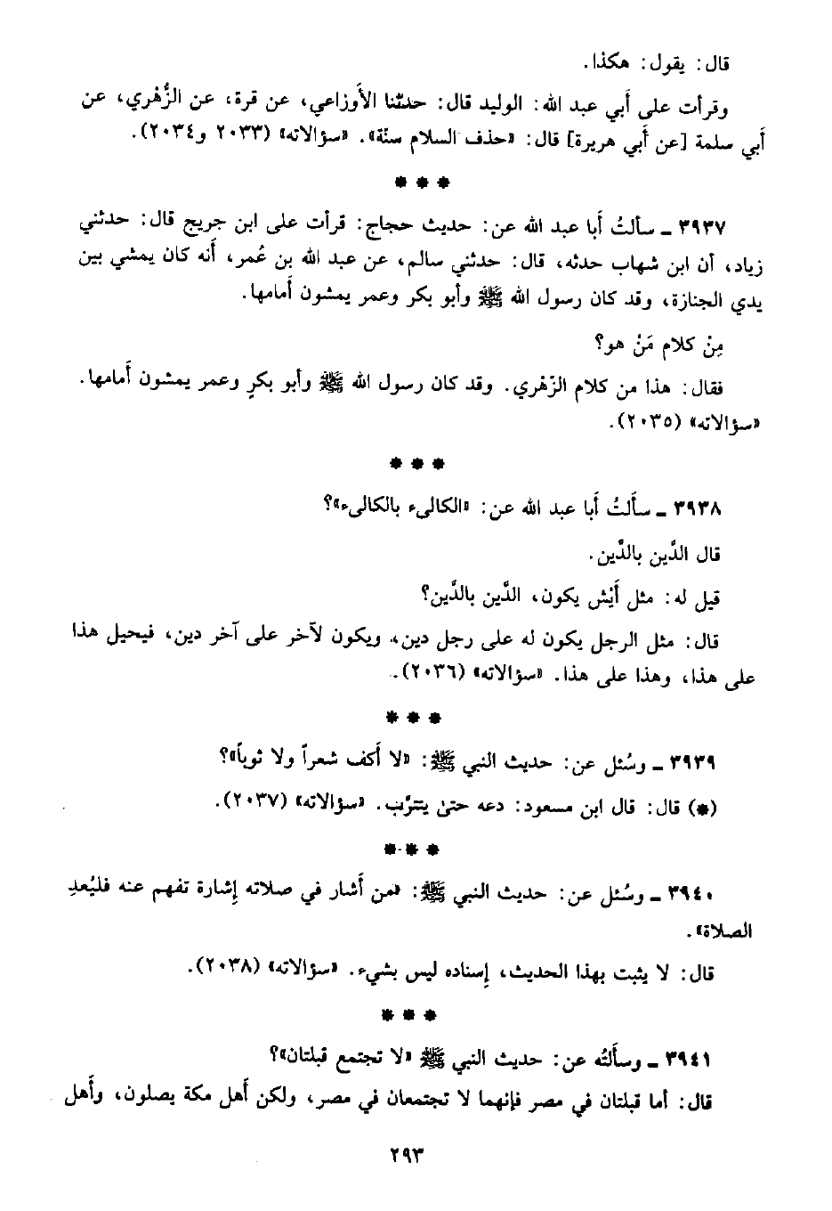 3941 - وسألته عن: حديث النبي صلى الله عليه وسلم «لا تجتمع قبلتان» ؟