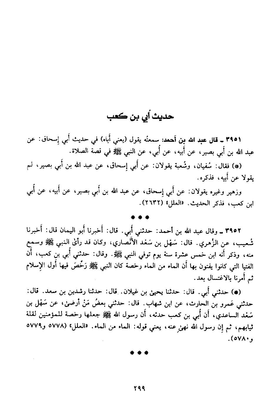 3951 - قال عبد الله بن أحمد: سَمِعتُهُ يقول (يعني أباه) في حديث أبي إسحاق: عن عبد الله بن أبي بصير، عن أبيه، عن أبي، عن النبي - صلى الله عليه وسلم - في قصة الصلاة.