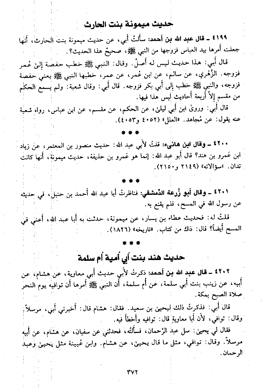 4199 - قال عبد الله بن أحمد: سألت أبي، عن حديث ميمونة بنت الحارث، أنها جعلت أمرها بيد العباس فزوجها من النبي - صلى الله عليه وسلم -، صحيح هذا الحديث؟