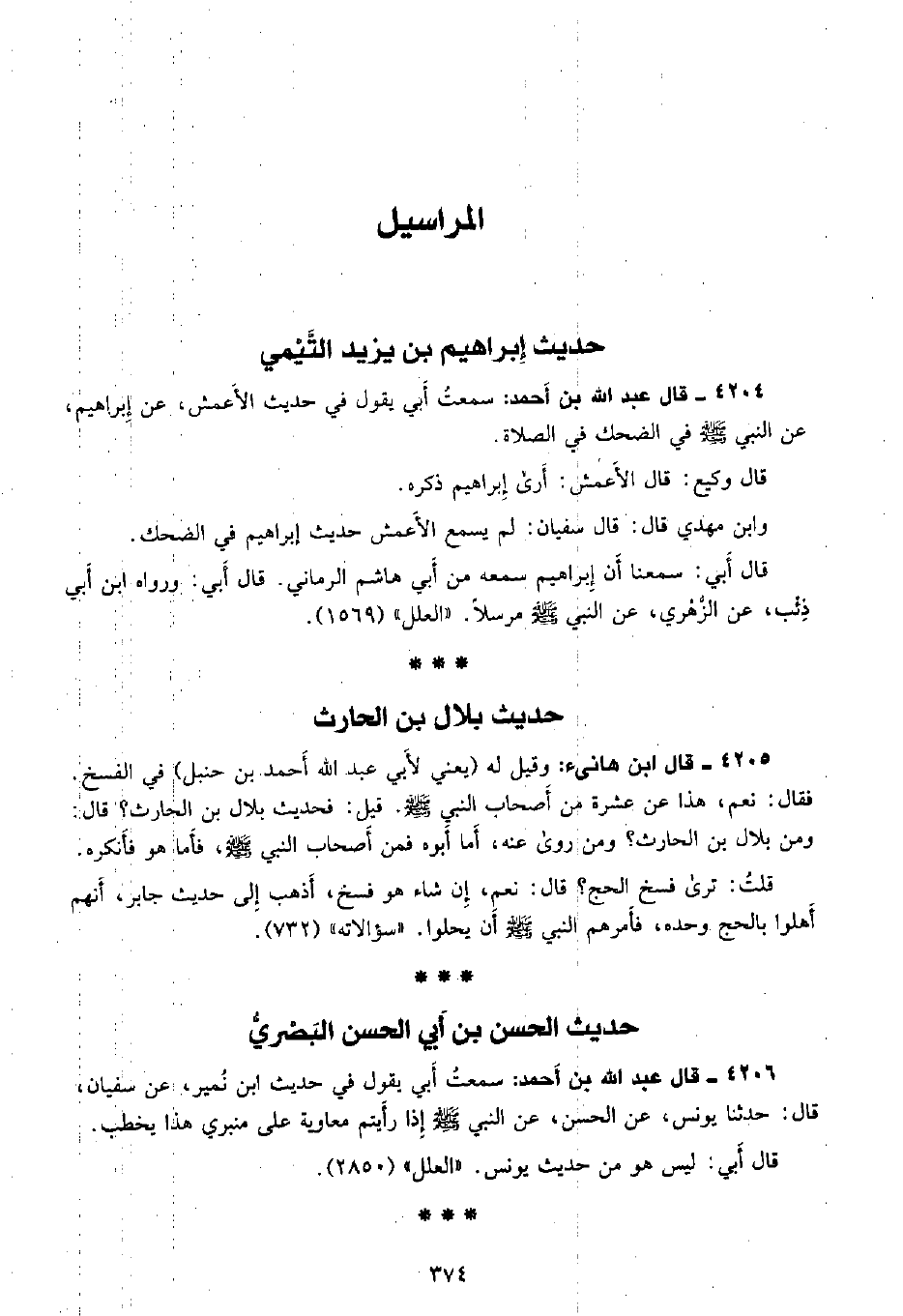 4204 - قال عبد الله بن أحمد: سمعتُ أَبي يقول فى حديث الأعمش، عن إبراهيم، عن النبي - صلى الله عليه وسلم - في الضحك في الصلاة.
