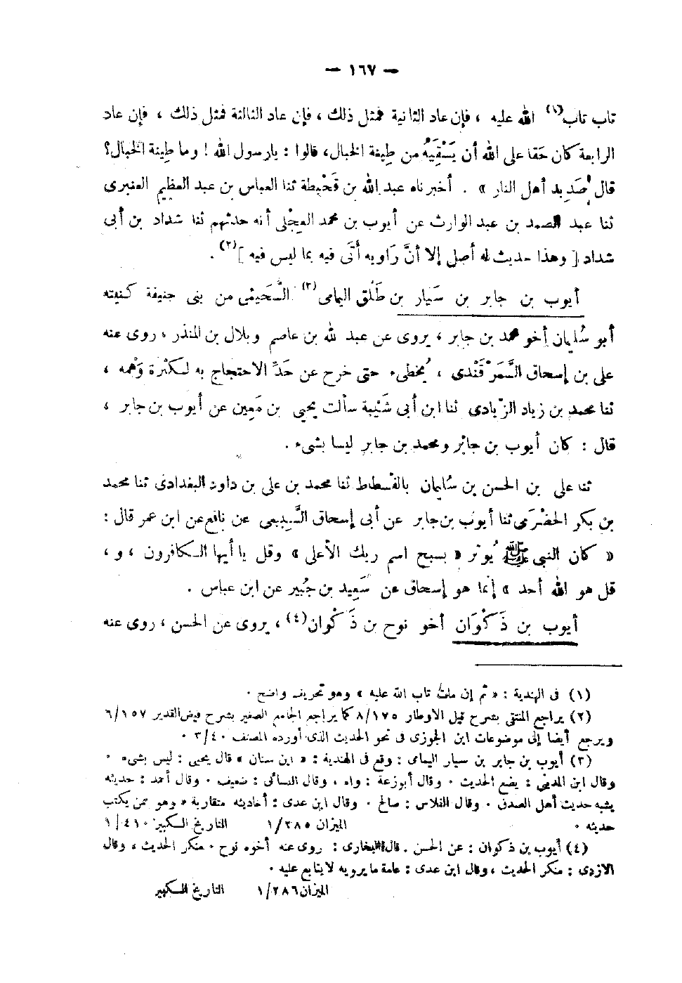 96 - أَيُّوب بْن جَابِر بْن سيار بْن طلق اليمامي السحيمي من بَنِي حَنِيفَة كنيته أَبُو سُلَيْمَان أَخُو مُحَمَّد بْن جَابِر يروي عَن عَبْد اللَّهِ بْن عَاصِم وبلال بْن الْمُنْذر روى عَنْهُ عَلِي بن إِسْحَاق السَّمرقَنْدِي يخطىء حَتَّى خرج عَن حد الِاحْتِجَاج بِهِ لِكَثْرَة وهمه ثَنَا مُحَمَّد بن زِيَاد الزيَادي ثَنَا بن أَبِي شيبَة سَأَلت يَحْيَى بْن معِين عَن أَيُّوب بْن جَابِر قَالَ كَانَ أَيُّوب بْن جَابِر وَمُحَمّد بْن جَابِر ليسَا بِشَيْء ثَنَا عَلِيُ بْنُ الْحَسَنِ بْنِ سُلَيْمَانَ بِالْفُسْطَاطِ ثَنَا مُحَمَّدُ بْنُ عَلِيِّ بْنِ دَاوُدَ الْبَغْدَادِيُّ ثَنَا مُحَمَّدُ بْنُ بَكْرٍ الْحَضْرَمِيُّ ثَنَا أَيُّوبُ بْنُ جَابِرٍ عَنْ أَبِي إِسْحَاقَ السَّبِيعِيِّ عَنْ نَافِعٍ عَنِ بن عُمَرَ قَالَ كَانَ النَّبِيُّ صَلَّى الله عَلَيْهِ وَسلم يُوتر بسبح اسْم رَبك الْأَعْلَى وَقل يَا أَيهَا الْكَافِرُونَ وَقل هُوَ اللَّهُ أَحَدٌ إِنَّمَا هُوَ إِسْحَاقُ عَنْ سَعِيدِ بْنِ جُبَيْرٍ عَن بن عَبَّاس