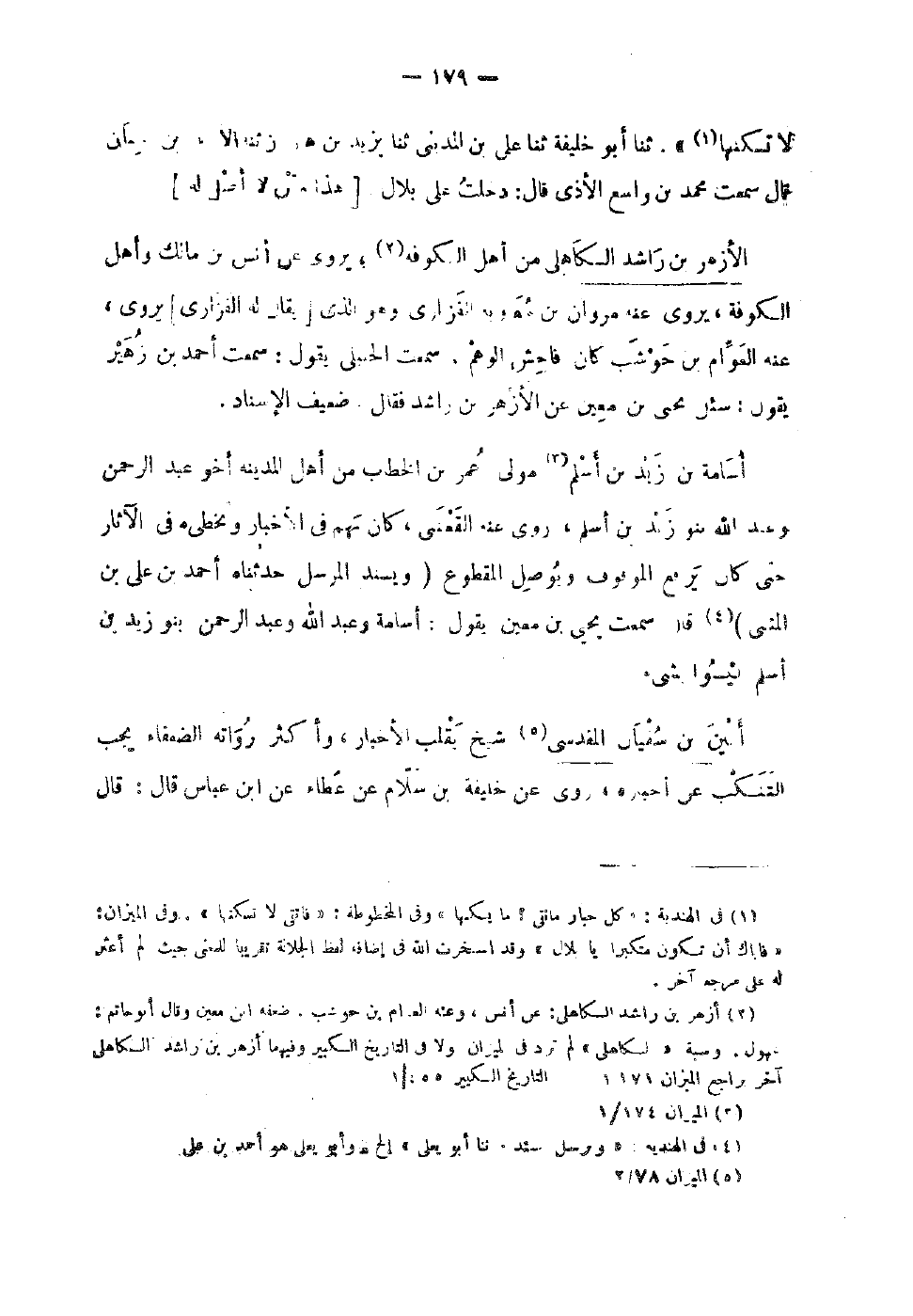 114 - الْأَزْهَر بْن رَاشد الْكَاهِلِي من أهل الْكُوفَة يَرْوِي عَن أَنَس بْن مَالِك وَأهل الْكُوفَة يَرْوِي عَنْهُ مَرْوَان بْن مُعَاوِيَة الْفَزارِيّ وَهُوَ الَّذِي يُقَال لَهُ الْفَزارِيّ يَرْوِي عَنْهُ الْعَوام بْن حَوْشَب كَانَ فَاحش الْوَهم سَمِعْتُ الْحَنْبَلِيَّ يَقُولُ سَمِعت أَحْمَد بْن زُهَيْر يَقُول سُئِلَ يَحْيَى بْن معِين عَن الأَزْهَرِ بْنِ رَاشِدٍ فَقَالَ ضَعِيفُ الإِسْنَادِ