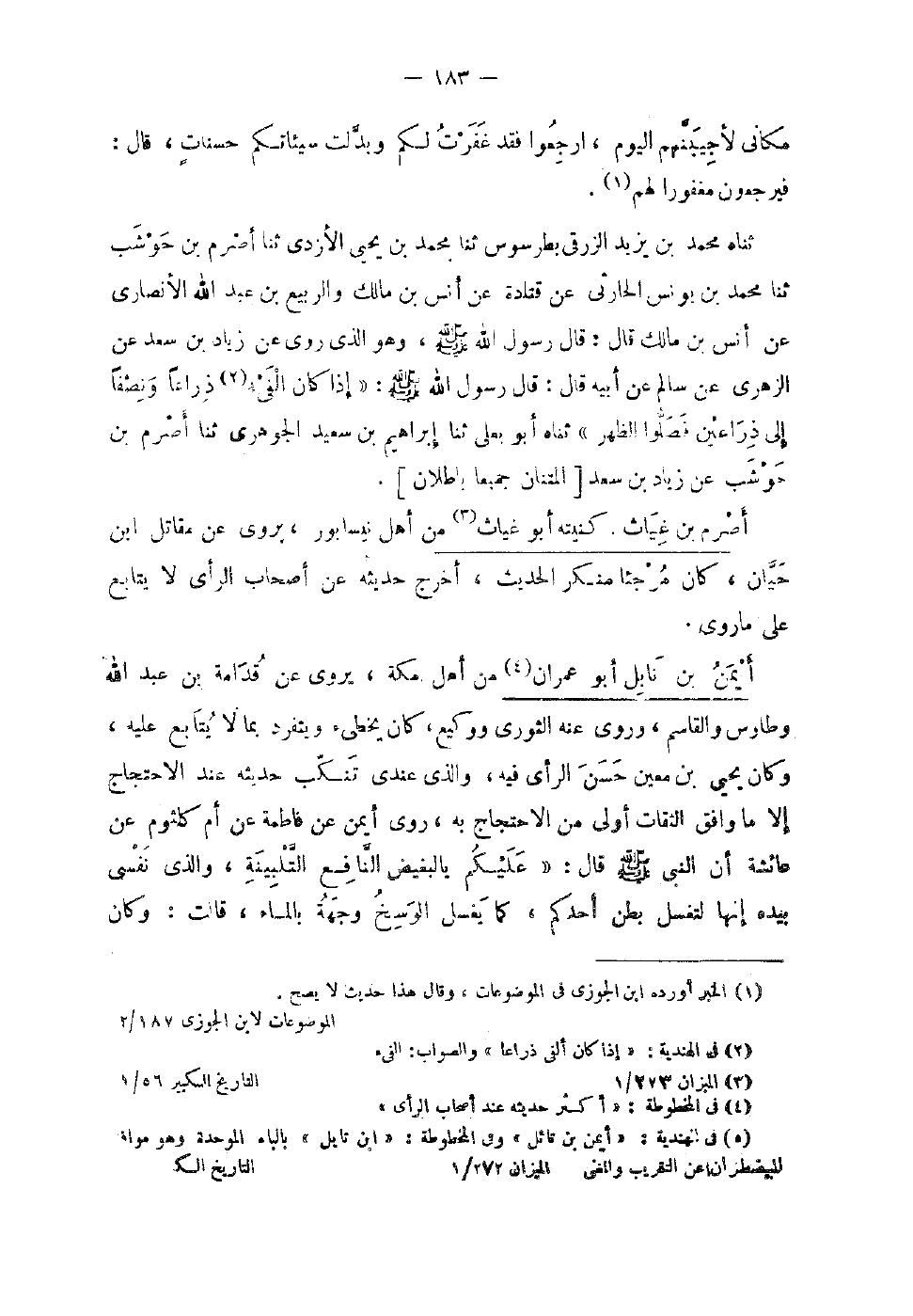 مَكَاني لأجبينهم الْيَوْمَ ارْجِعُوا فَقَدْ غَفَرْتُ لَكُمْ وَبَدَّلْتُ سَيِّئَاتِكُمْ حَسَنَاتٍ قَالَ فَيَرْجِعُونَ مغفروا لَهُمْ ثناه مُحَمَّدُ بْنُ يَزِيدَ الزرقي بِطَرَسُوسَ ثَنَا مُحَمَّدُ بْنُ يَحْيَى الأَزْدِيُّ ثَنَا أَصْرَمُ بْنُ حَوْشَبٍ ثَنَا مُحَمَّدُ بْنُ يُونُسَ الْحَارِثِي عَنْ قَتَادَةَ عَنْ أَنَسِ بْنِ مَالِكٍ وَالرَّبِيعِ بْنِ عَبْدِ اللَّهِ الأَنْصَارِيِّ عَنْ أَنَسِ بْنِ مَالِكٍ قَالَ قَالَ رَسُولُ اللَّهِ صَلَّى اللَّهُ عَلَيْهِ وَسَلَّمَ وَهُوَ الَّذِي روى عَن زِيَاد بن سعيد عَنِ الزُّهْرِيِّ عَنْ سَالِمٍ عَنْ أَبِيهِ قَالَ قَالَ رَسُولُ اللَّهِ صَلَّى اللَّهُ عَلَيْهِ وَسَلَّمَ إِذا كَانَ الْفَيْءُ ذِرَاعًا وَنِصْفًا إِلَى ذِرَاعَيْنِ فَصَلُّوا الظُّهْرَ ثناه أَبُو يَعْلَى ثَنَا إِبْرَاهِيمُ بْنُ سَعِيدٍ الْجَوْهَرِيُّ ثَنَا أَصْرَمُ بْنُ حَوْشَبٍ عَن زِيَاد بن سعيد المتنان جَمِيعًا باطلان