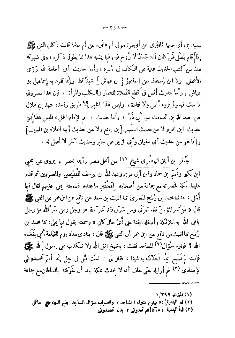 سَعِيدِ بْنِ أَبِي سَعِيدٍ الْمَقْبُرِيِّ عَنْ أَبِي مُرَّةَ مَوْلَى أُمِّ هَانِئٍ عَنْ أُمِّ سَلَمَةَ قَالَتْ كَانَ النَّبِيُّ صَلَّى اللَّهُ عَلَيْهِ وَسَلَّمَ إِذَا قَامَ يُصَلِّي ظَنَّ ظَانٌّ أَنَّهُ جَسَدٌ لَا رُوحَ فِيهِ فِيمَا يُشْبِهُ هَذَا مِمَّا يَطُولُ ذِكْرُهُ وَفِي شُهْرَتِهِ عِنْدَ مَنْ كَتَبَ الْحَدِيث غنية عَنِ التَّكَلُّفِ فِي أَمْرِهِ وَأَمَّا حَدِيث أَبِي أُسَامَة فَمَا روى الأَعْمَش وَلَا بن إِسْحَاق عَن إِسْمَاعِيل بْن عَيَّاش شَيْئًا قطّ وَإِنَّمَا تفرد بِهِ إِسْمَاعِيل بْن عَيَّاش وَأَمَّا حَدِيث أَنَس فِي قطع الصَّلَاة للحمار وَالْكَلب وَالْمَرْأَة فَإِن هَذَا مَسْرُوق لَا شكّ فِيهِ وَلَمْ يروه أَنَس وَلَا قَتَادَة وَلَيْسَ لِهَذَا الْخَبَر إِلَّا طَرِيق وَاحِد حميد بْن هِلَال عَن عَبْد اللَّهِ بْن الصَّامِت عَن أَبِي ذَر وَأَمَّا حَدِيث نعم الإدام الْخلّ فَلَيْسَ هَذَا من حَدِيث بن عمر لَا من حَدِيث الْمُسَيِّب بْن رَافع وَلَا من حَدِيث أَبِيه الْعَلَاء بْن الْمُسَيِّب وَإِنَّمَا هُوَ من حَدِيث أبي اسفين وَأبي الزُّبَيْر عَن جَابِر وحَدِيث آخر لَا أصل لَهُ