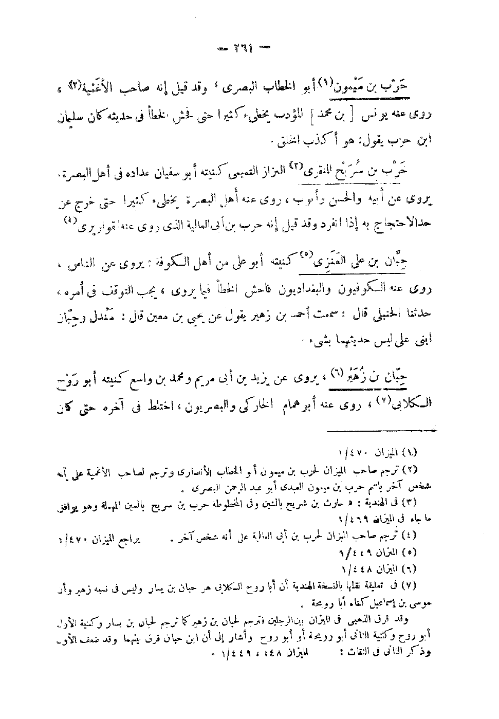 262 - حبَان بْن زُهَيْر يَرْوِي عَن يَزِيد بْن أَبِي مَرْيَم وَمُحَمّد بْن وَاسع كنيته أَبُو روح الْكلابِي روى عَنْهُ أَبُو همام الخاركي والبصريون اخْتَلَط فِي آخِره حَتَّى كَانَ